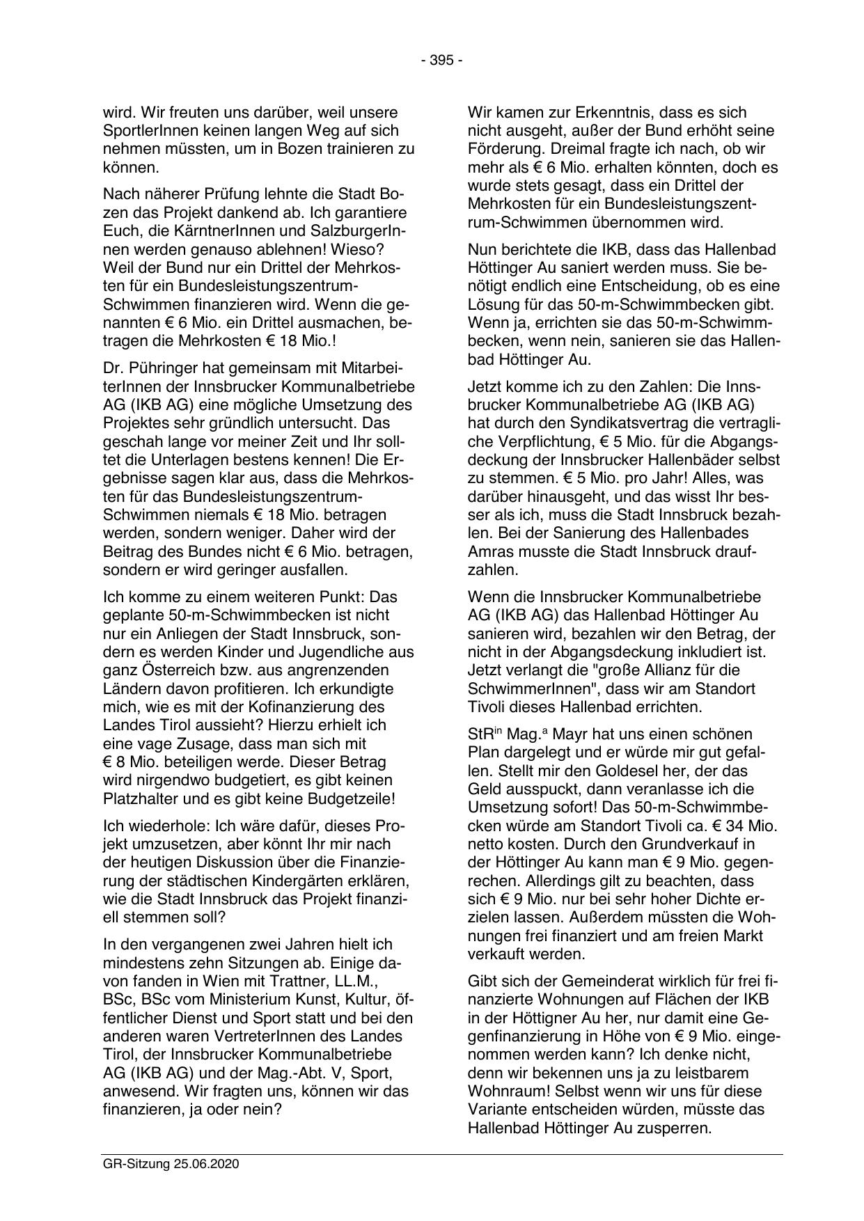 in der Höttigner Au her, nur damit eine Gegenfinanzierung in Höhe von € 9 Mio. eingenommen werden kann? Ich denke nicht,
