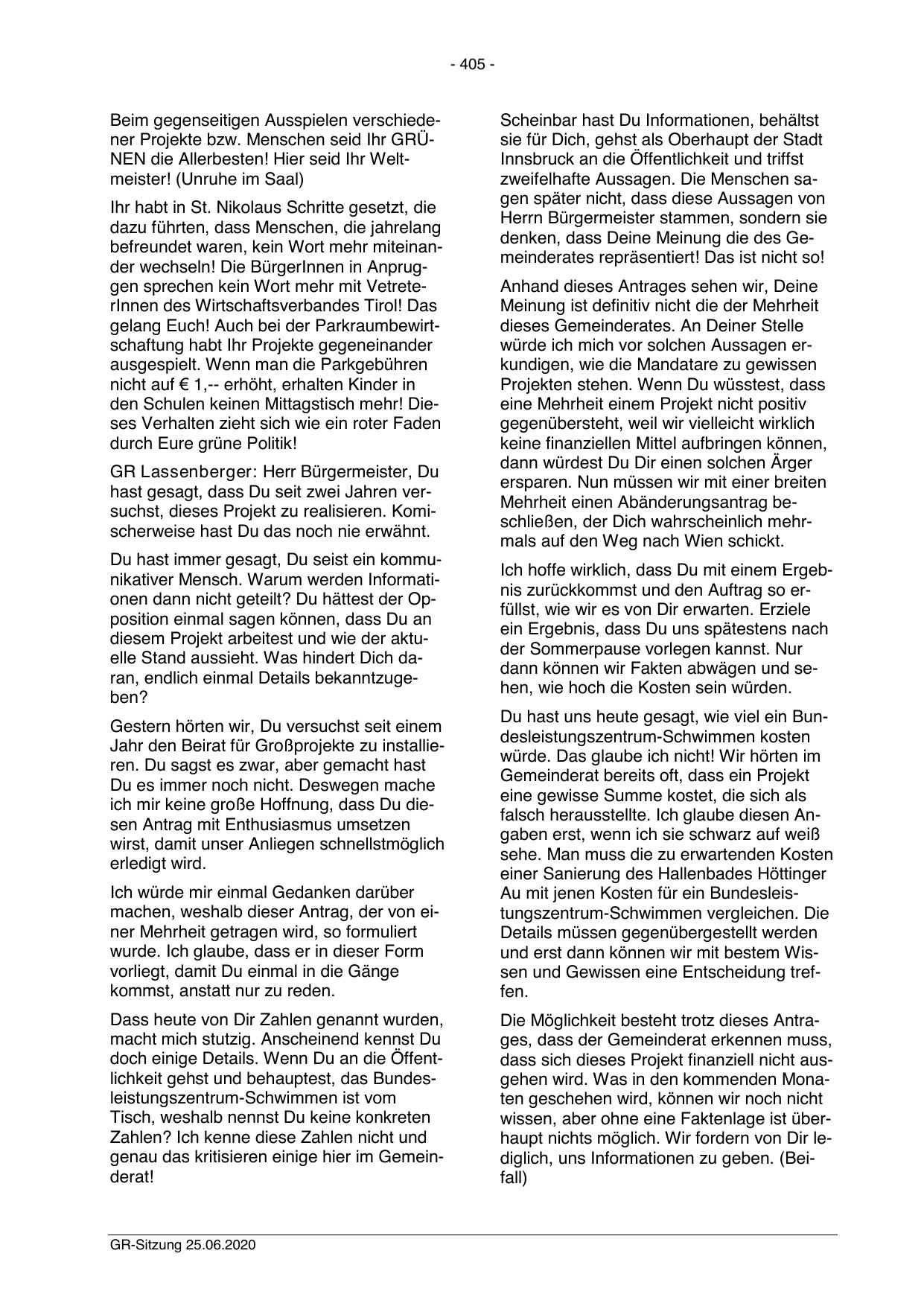 denken, dass Deine Meinung die des Gemeinderates repräsentiert! Das ist nicht so!