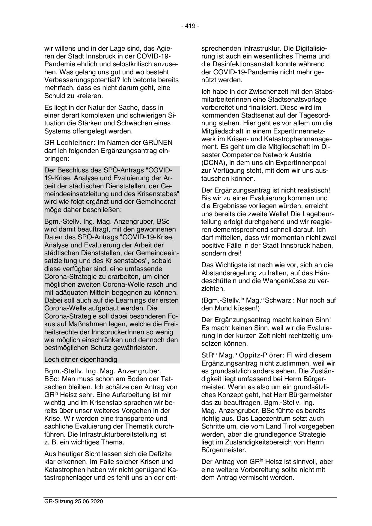 wir willens und in der Lage sind, das Agieren der Stadt Innsbruck in der COVID-19Pandemie ehrlich und selbstkritisch anzusehen. Was gelang uns gut und wo besteht