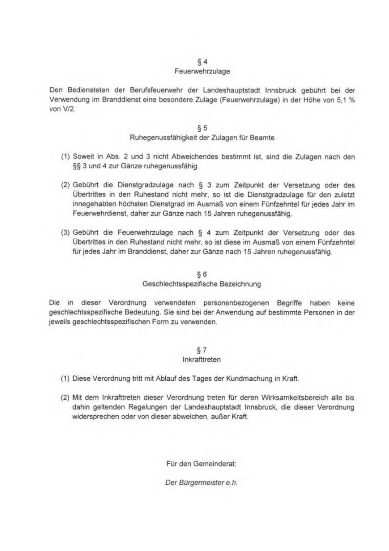 Den Bediensteten der Berufsfeuerwehr der Landeshauptstadt Innsbruck gebuhrt bei der
