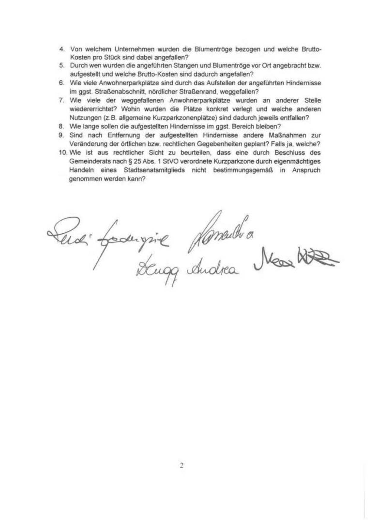 5. Durch wen wurden die angeführten Stangen und Blumentröge vor Ort angebracht bzw.