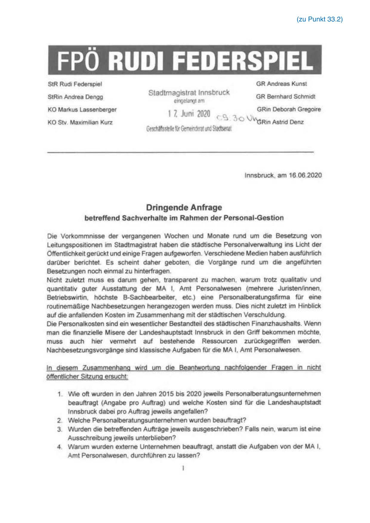 man die finanzielle Misere der Landeshauptstadt Innsbruck in den Griff bekommen möchte,