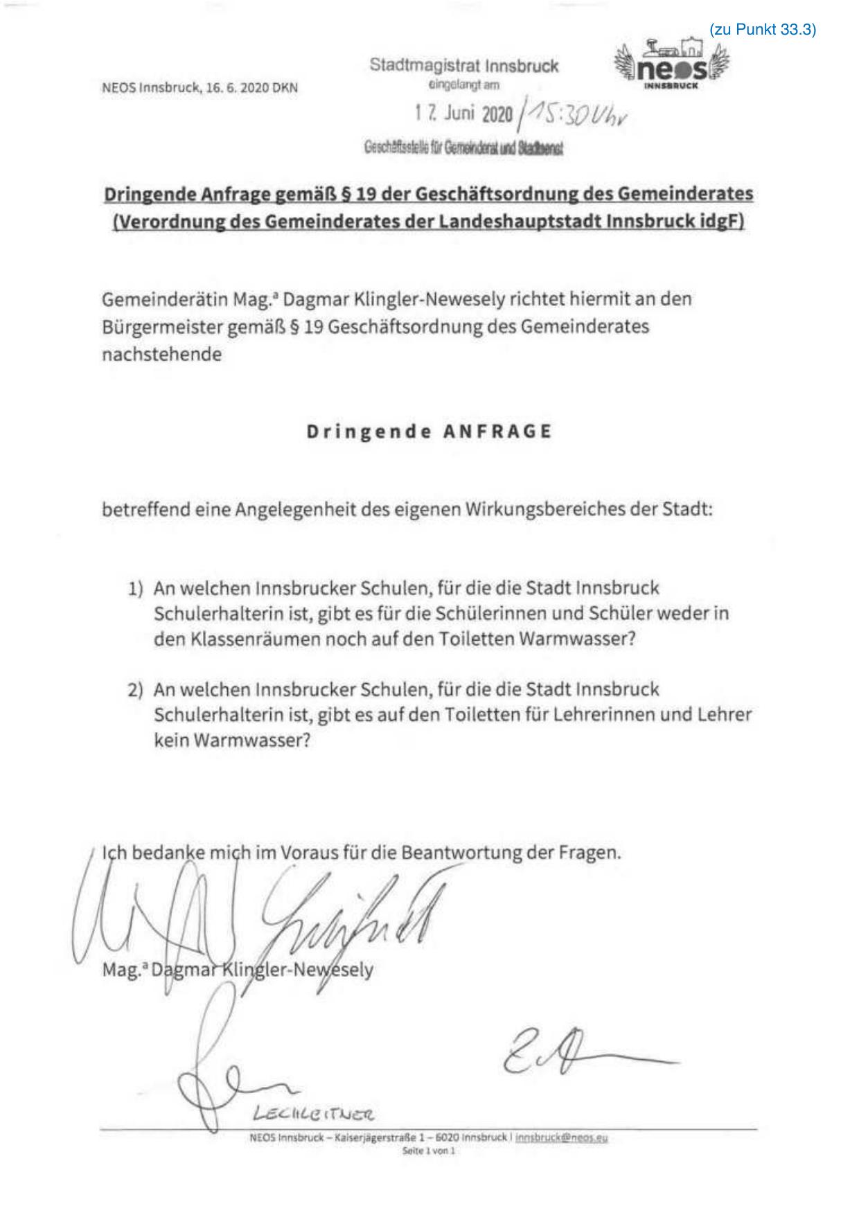 NEOS Innsbruck, 16. 6. 2020 DKN