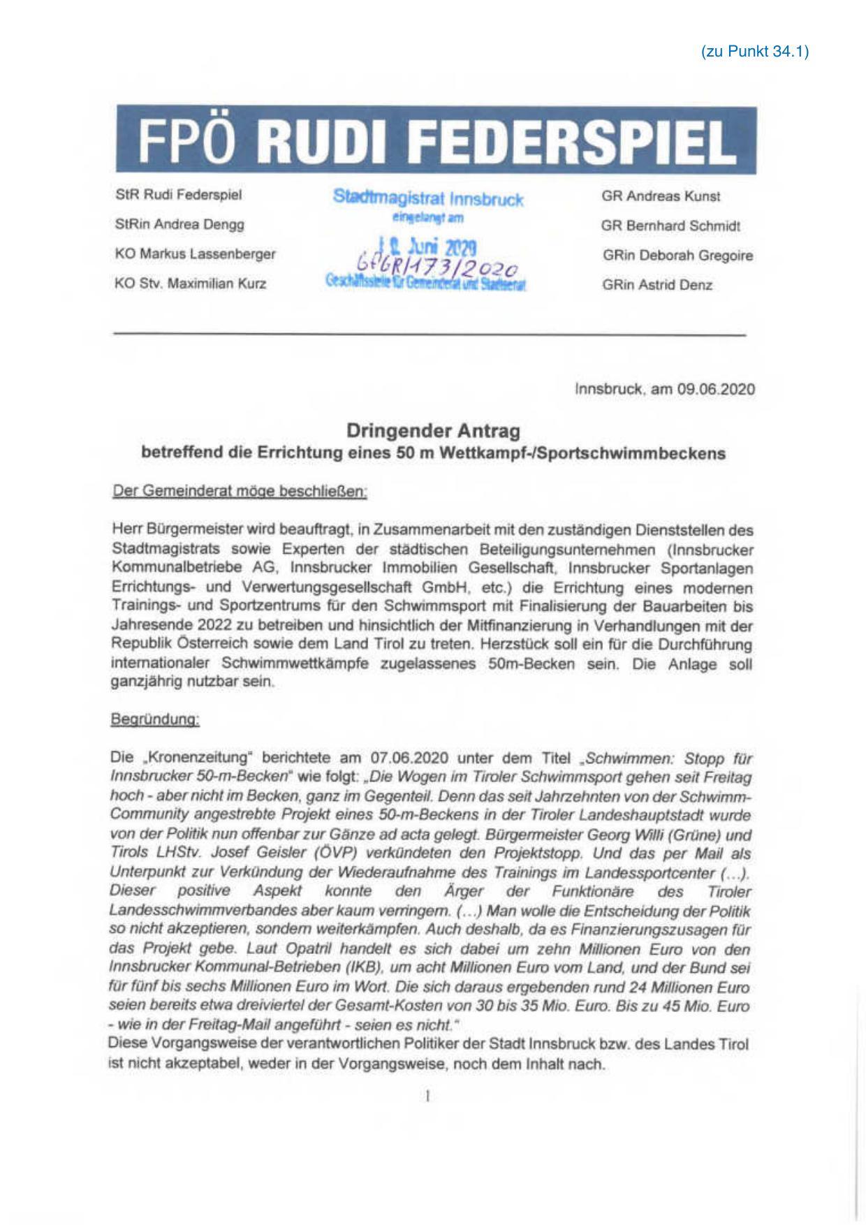 Innsbrucker 50- m-Becken“ wie folgt. „Die Wogen im Tiroler Schwimmsport gehen seit Freitag