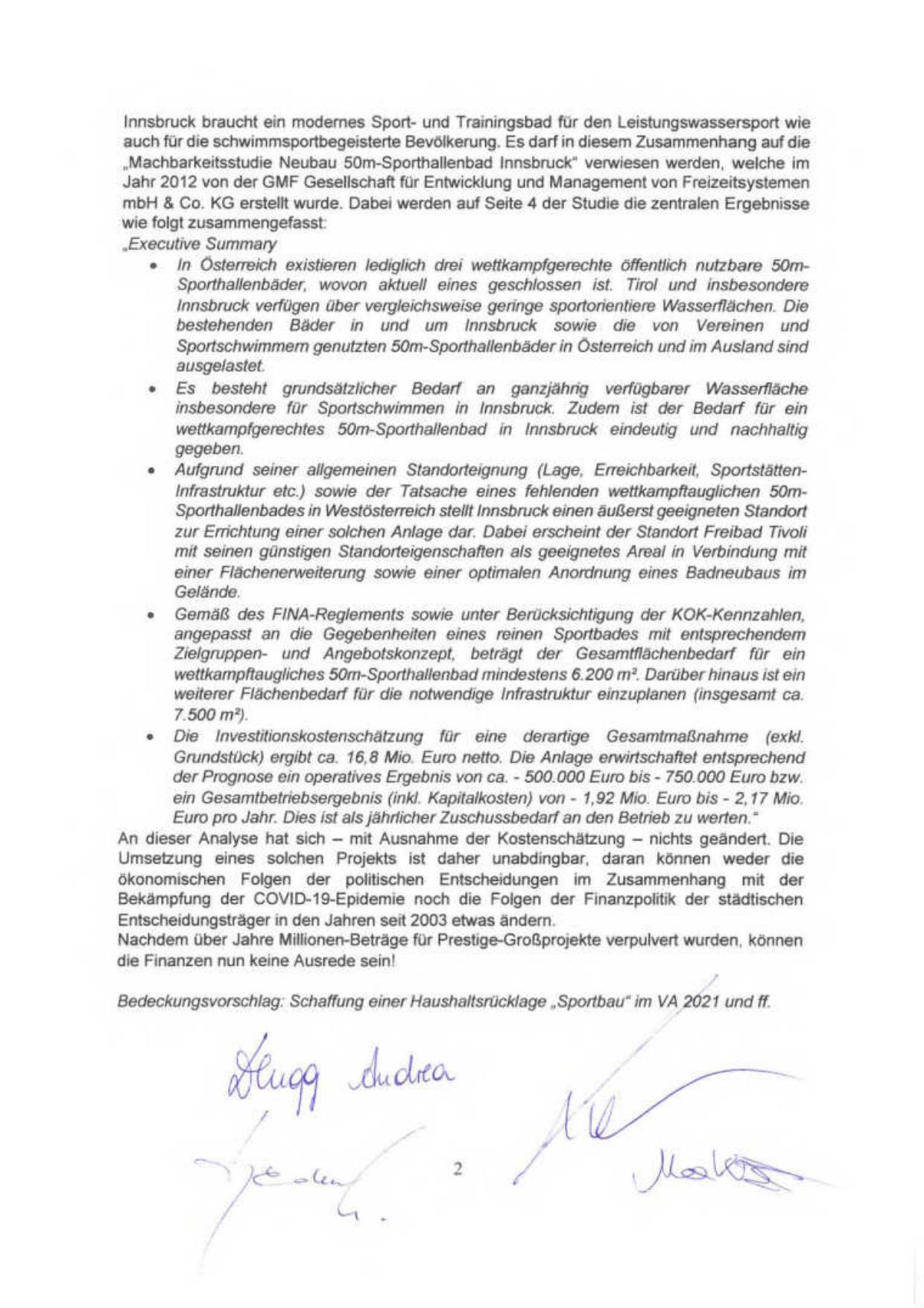 insbesondere für Sportschwimmen in Innsbruck. Zudem ist der Bedarf für ein