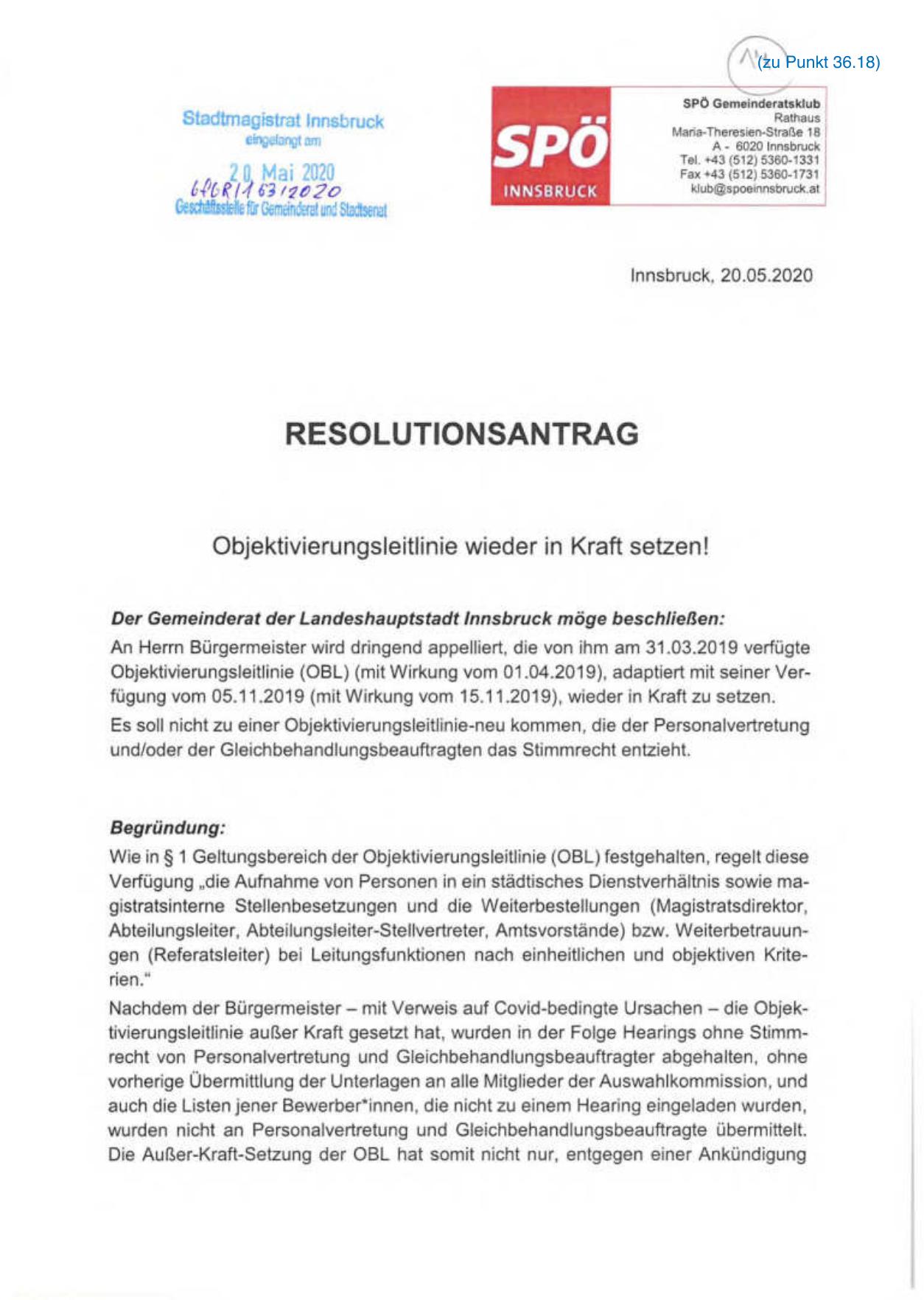 Der Gemeinderat der Landeshauptstadt Innsbruck möge beschließen: