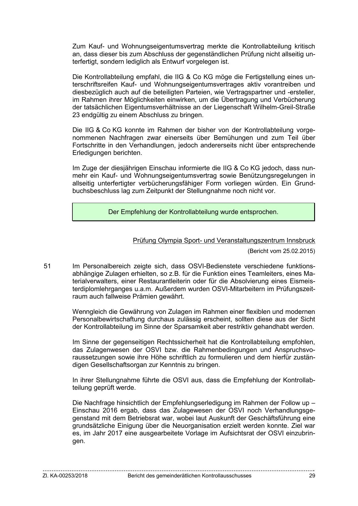 Im Zuge der diesjährigen Einschau informierte die IIG & Co KG jedoch, dass nunmehr ein Kauf- und Wohnungseigentumsvertrag sowie Benützungsregelungen in