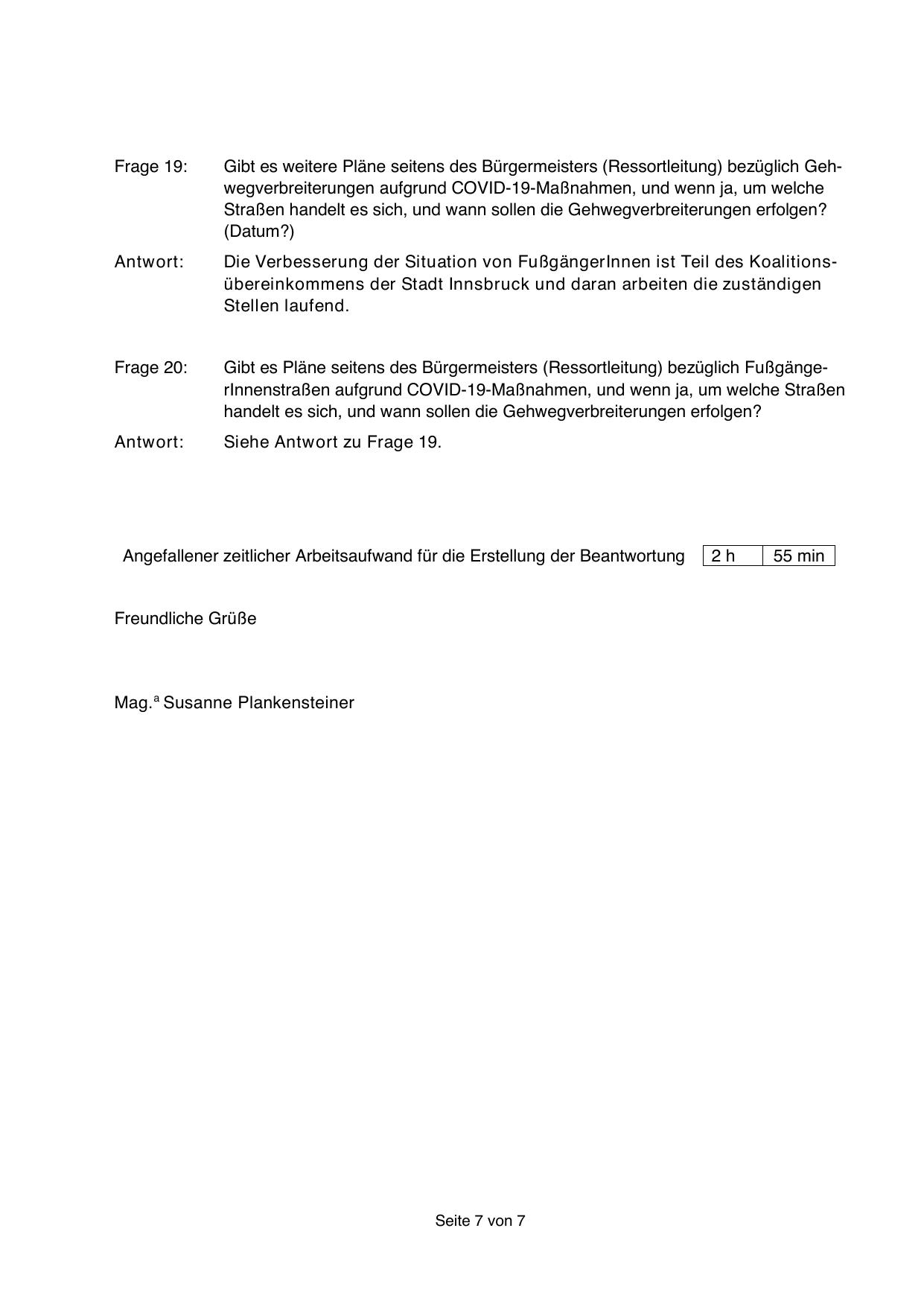 Gibt es weitere Pläne seitens des Bürgermeisters (Ressortleitung) bezüglich Gehwegverbreiterungen aufgrund COVID-19-Maßnahmen, und wenn ja, um welche