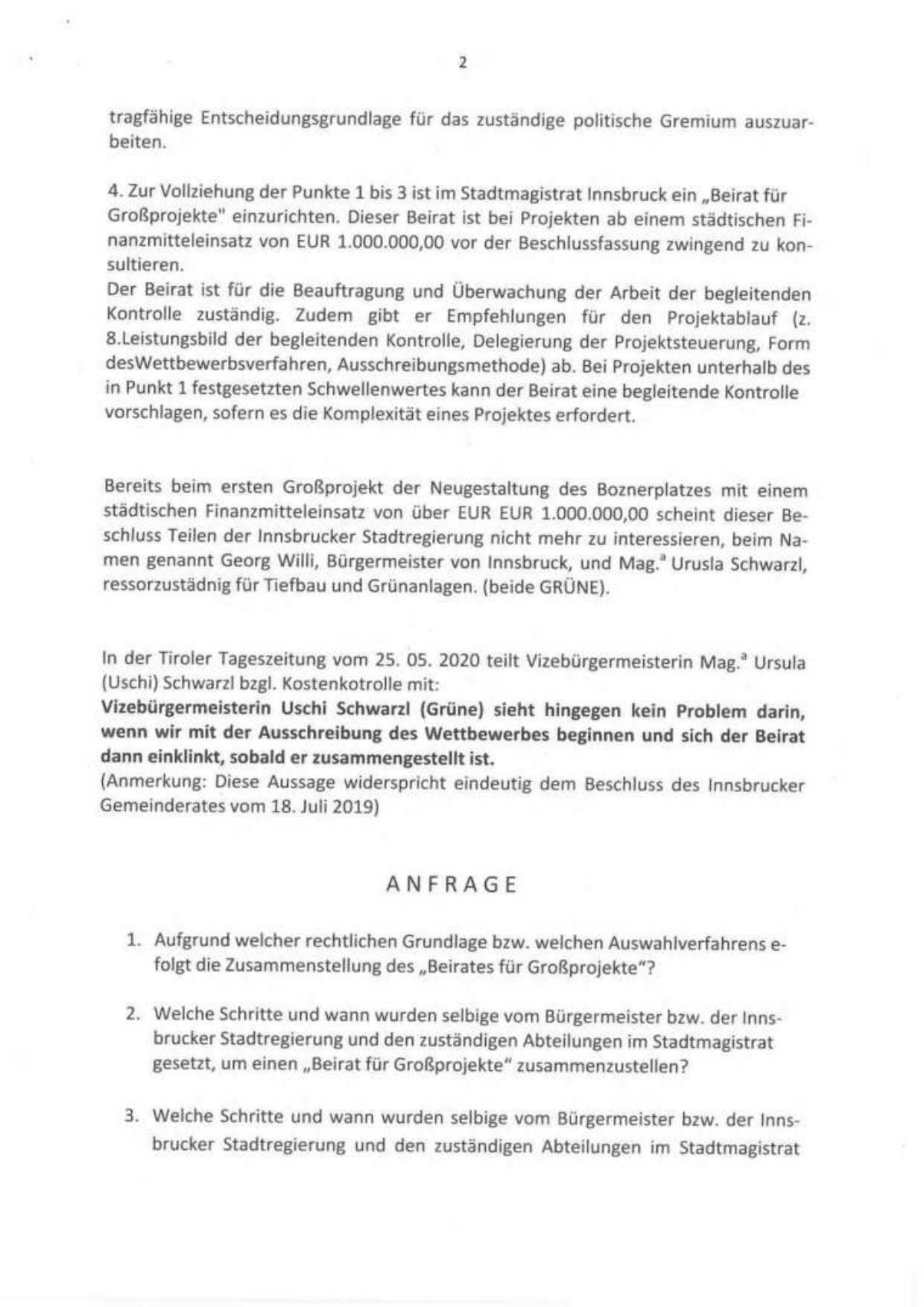 st ä dtischen Finanzmitteleinsatz von über EUR EUR 1.000.000,00 scheint dieser Beschluss Teilen der Innsbrucker Stadtregierung nicht mehr zu interessieren, beim Na men genannt Georg Willi, Bürgermeister von Innsbruck, und Mag.3 Urusla Schwarzl,