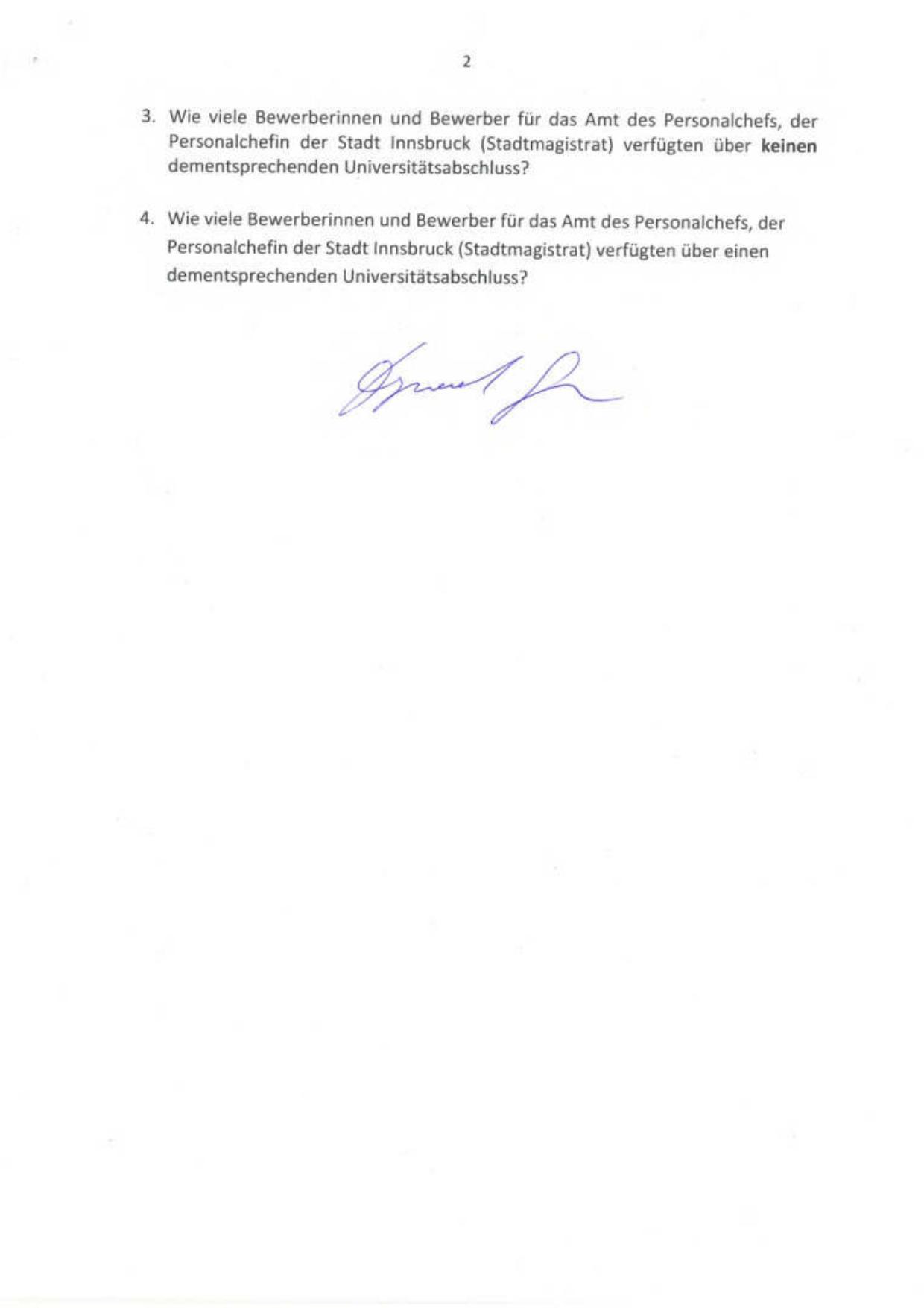 Personalchefin der Stadt Innsbruck ( Stadtmagistrat ) verf ügten über keinen
