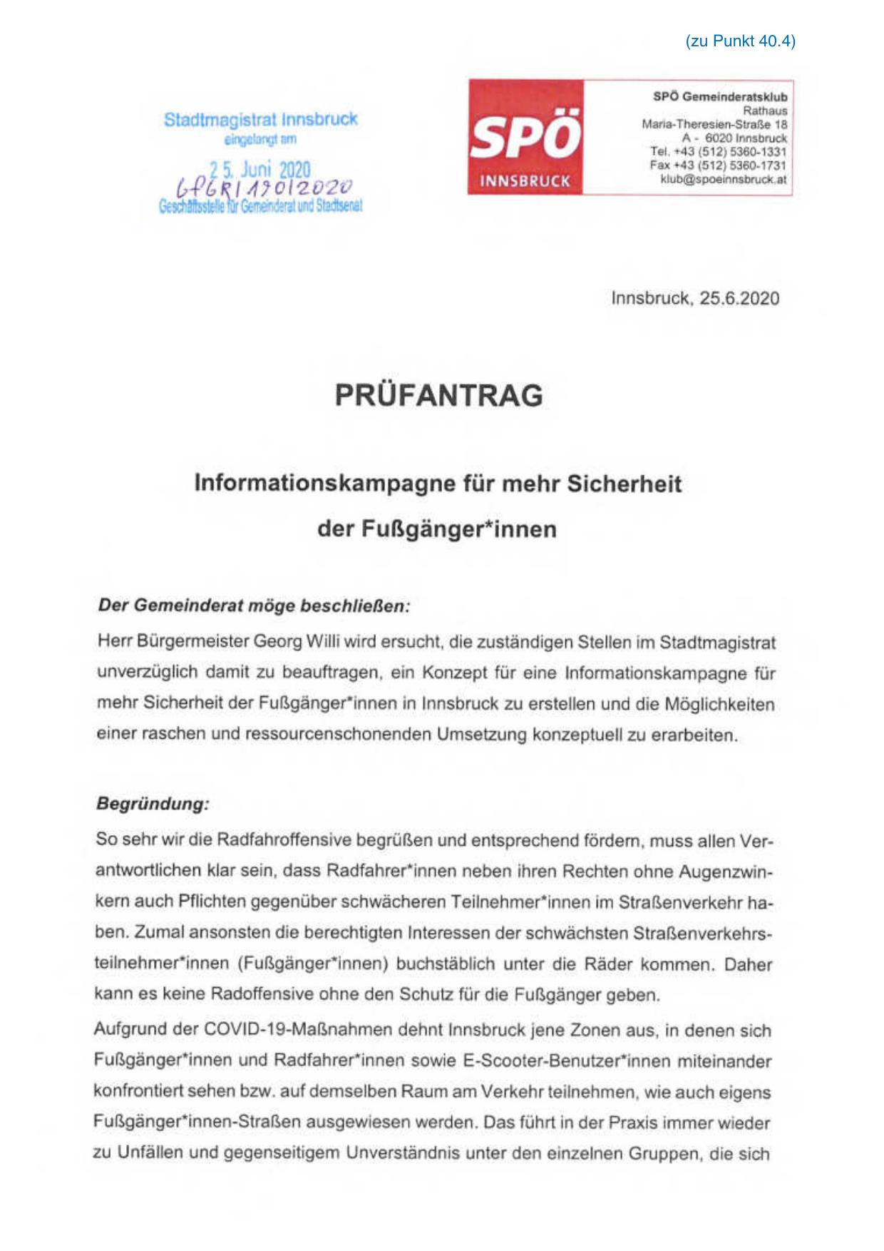mehr Sicherheit der Fußgänger*innen in Innsbruck zu erstellen und die Möglichkeiten