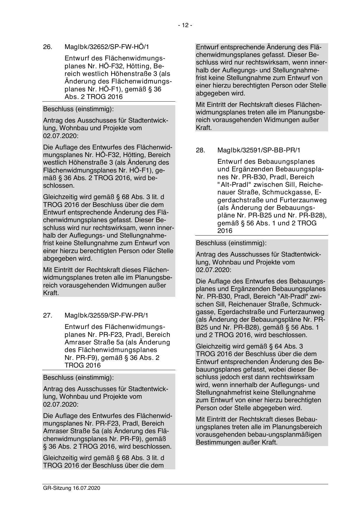 § 36 Abs. 2 TROG 2016, wird beschlossen.