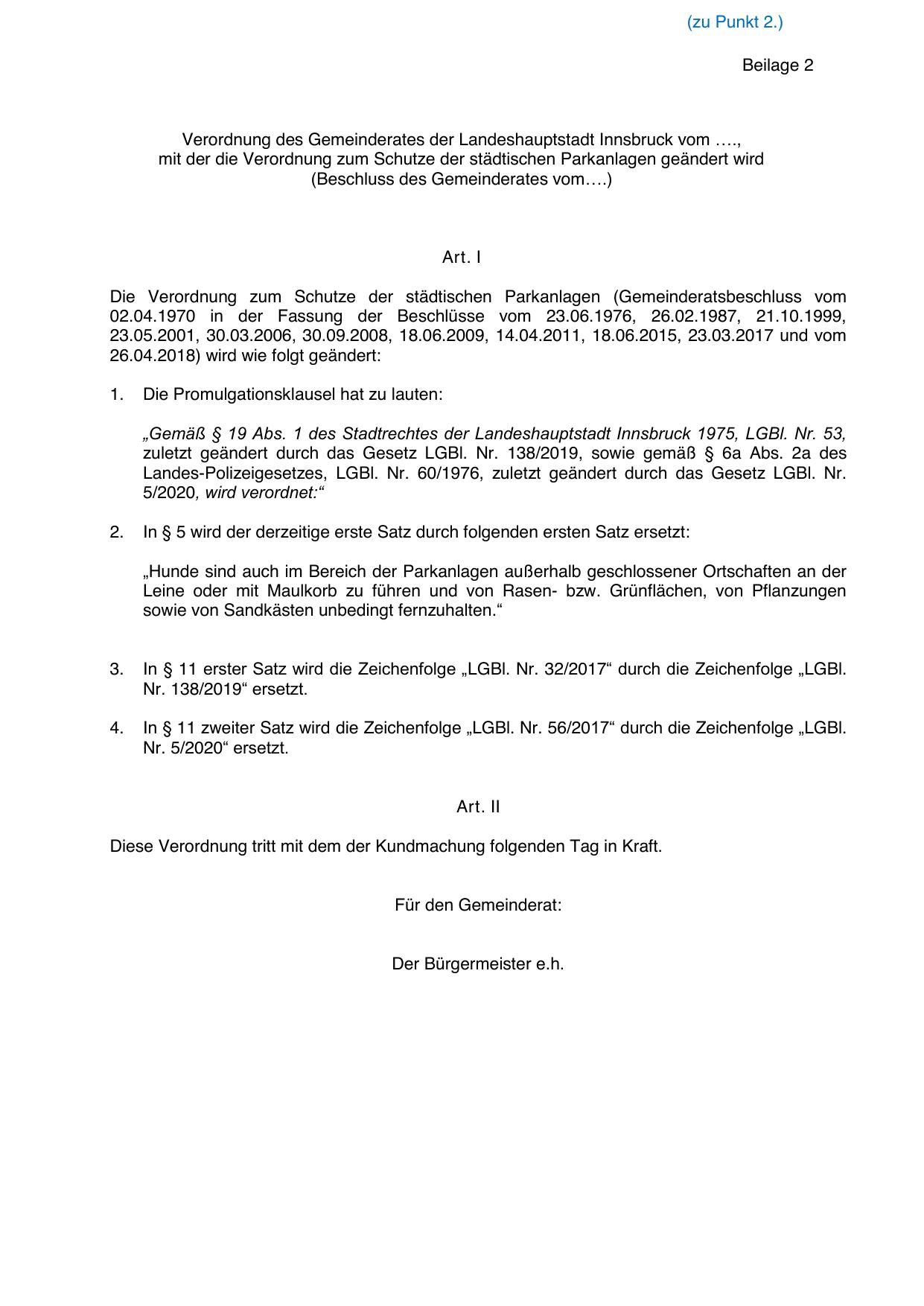 Verordnung des Gemeinderates der Landeshauptstadt Innsbruck vom ….,