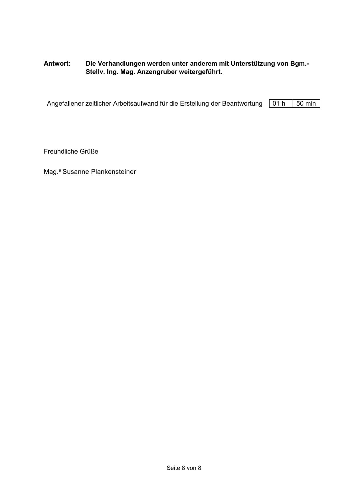 Die Verhandlungen werden unter anderem mit Unterstützung von Bgm.Stellv. Ing. Mag. Anzengruber weitergeführt.