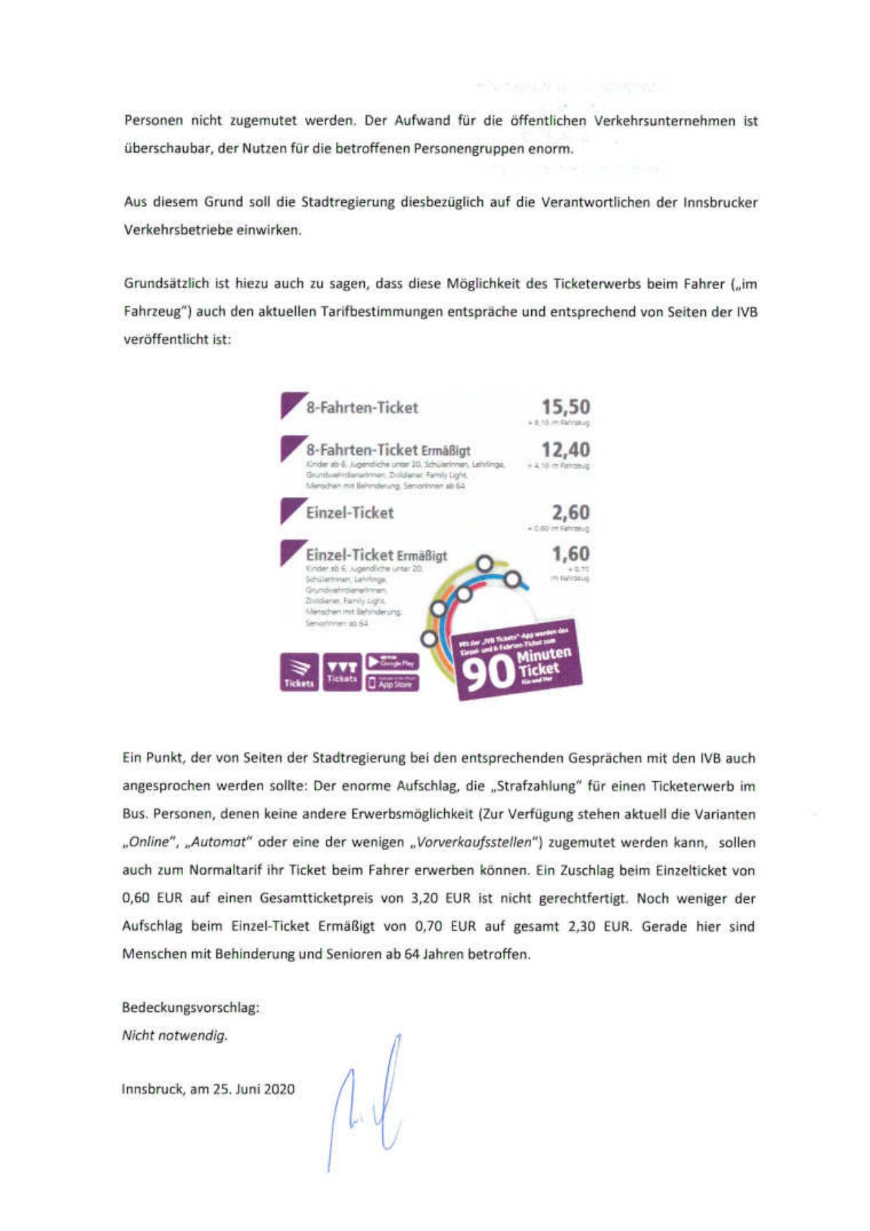 Aus diesem Grund soll die Stadtregierung diesbez üglich auf die Verantwortlichen der Innsbrucker