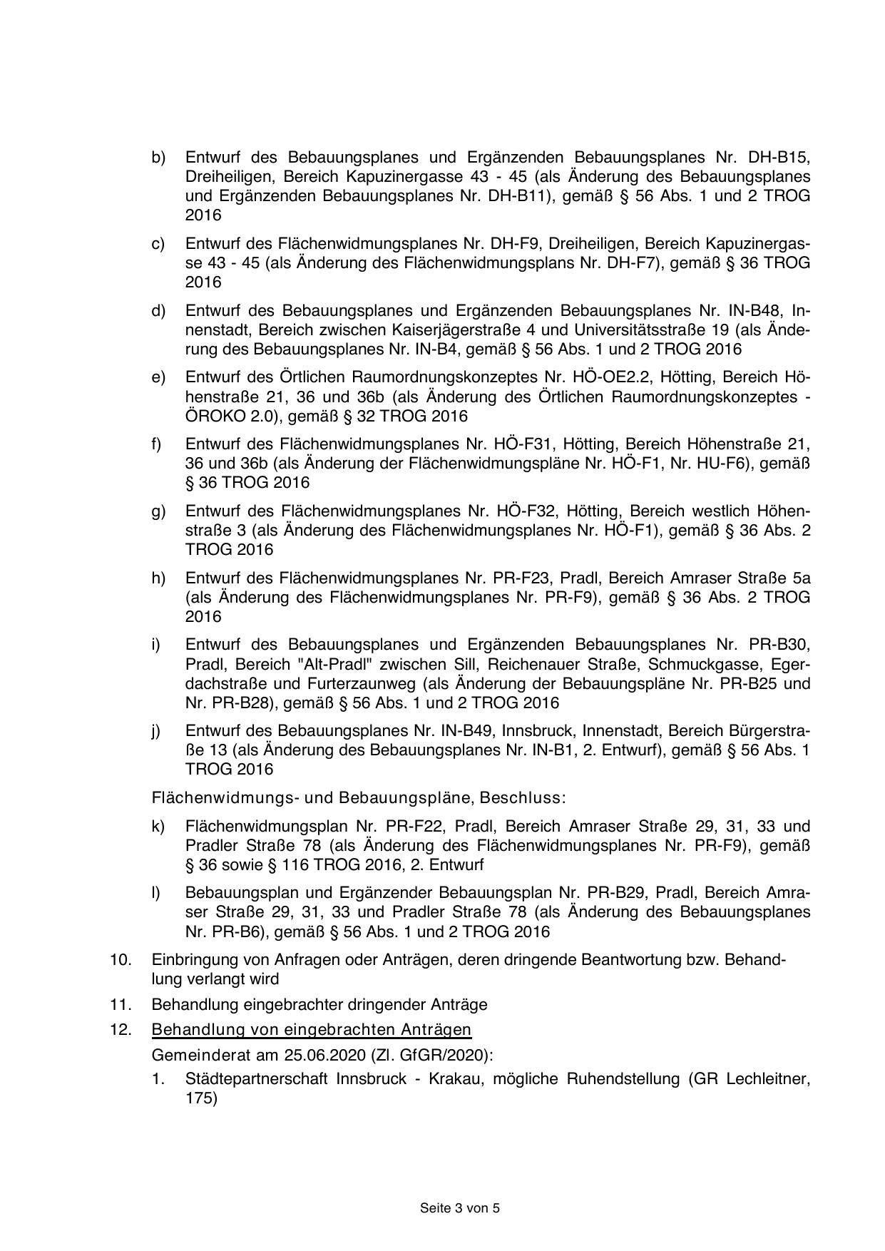 Gemeinderat am 25.06.2020 (Zl. GfGR/2020):