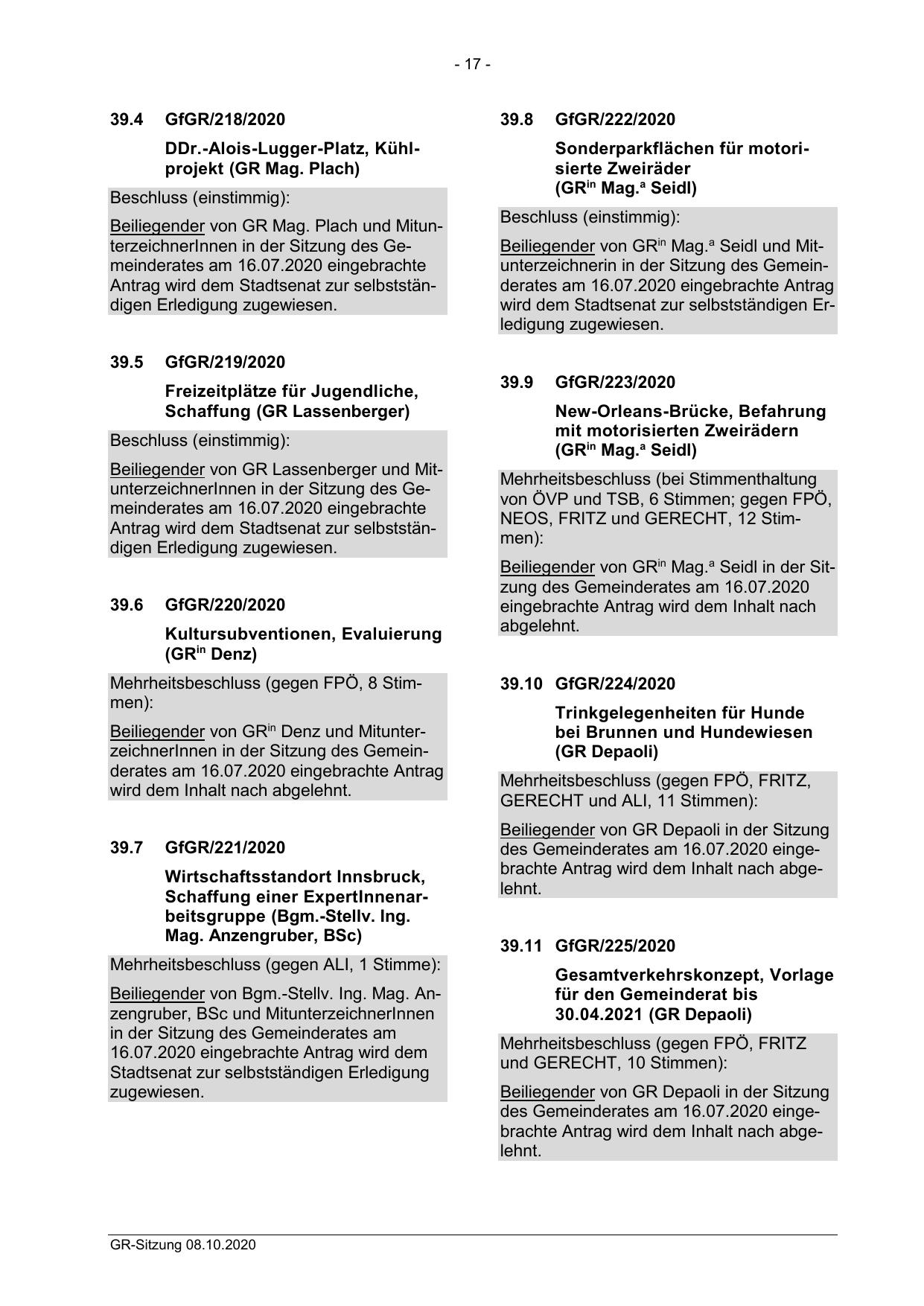 Beiliegender von GRin Denz und MitunterzeichnerInnen in der Sitzung des Gemeinderates am 16.07.2020 eingebrachte Antrag