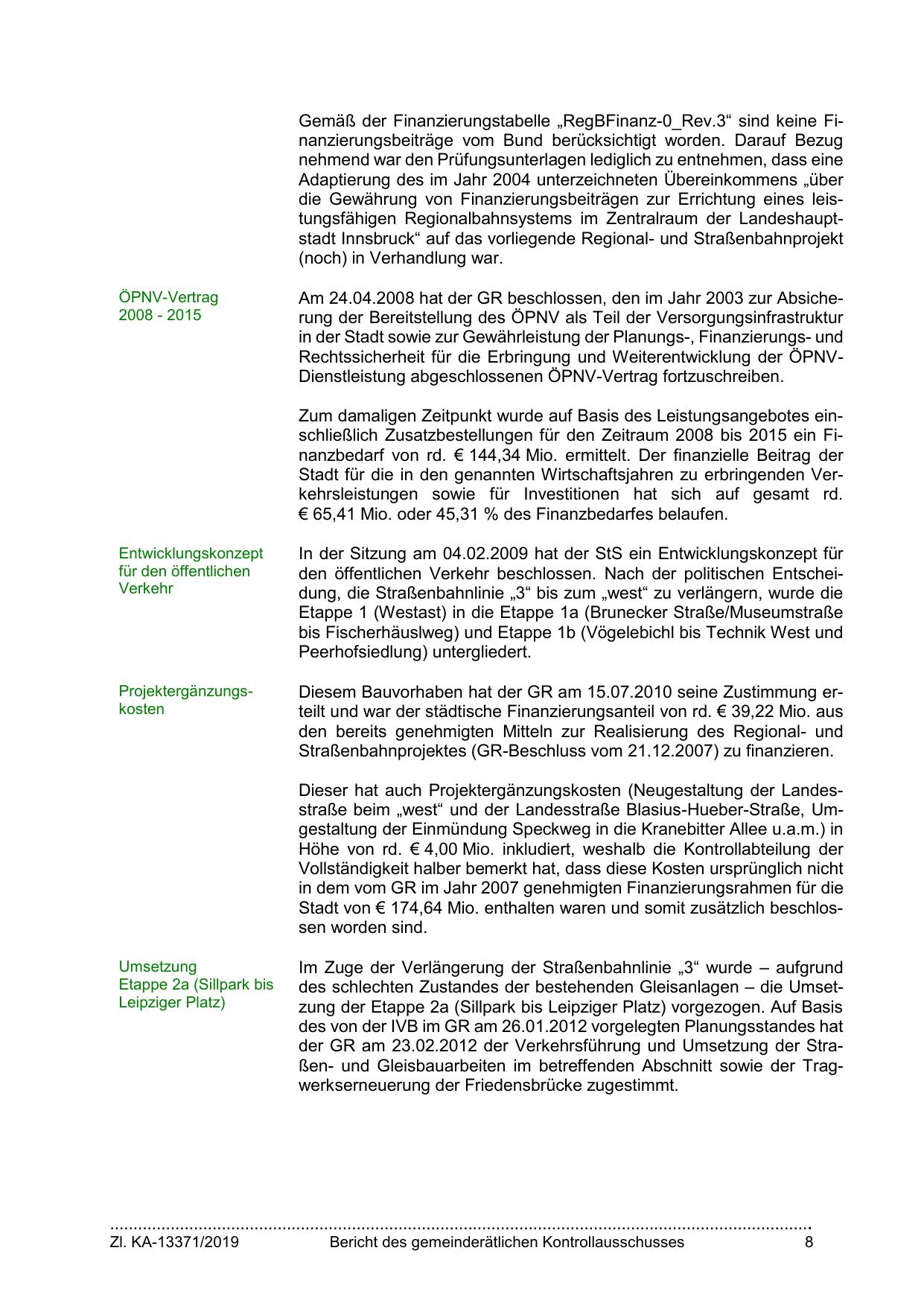 die Gewährung von Finanzierungsbeiträgen zur Errichtung eines leistungsfähigen Regionalbahnsystems im Zentralraum der Landeshauptstadt Innsbruck“ auf das vorliegende Regional- und Straßenbahnprojekt