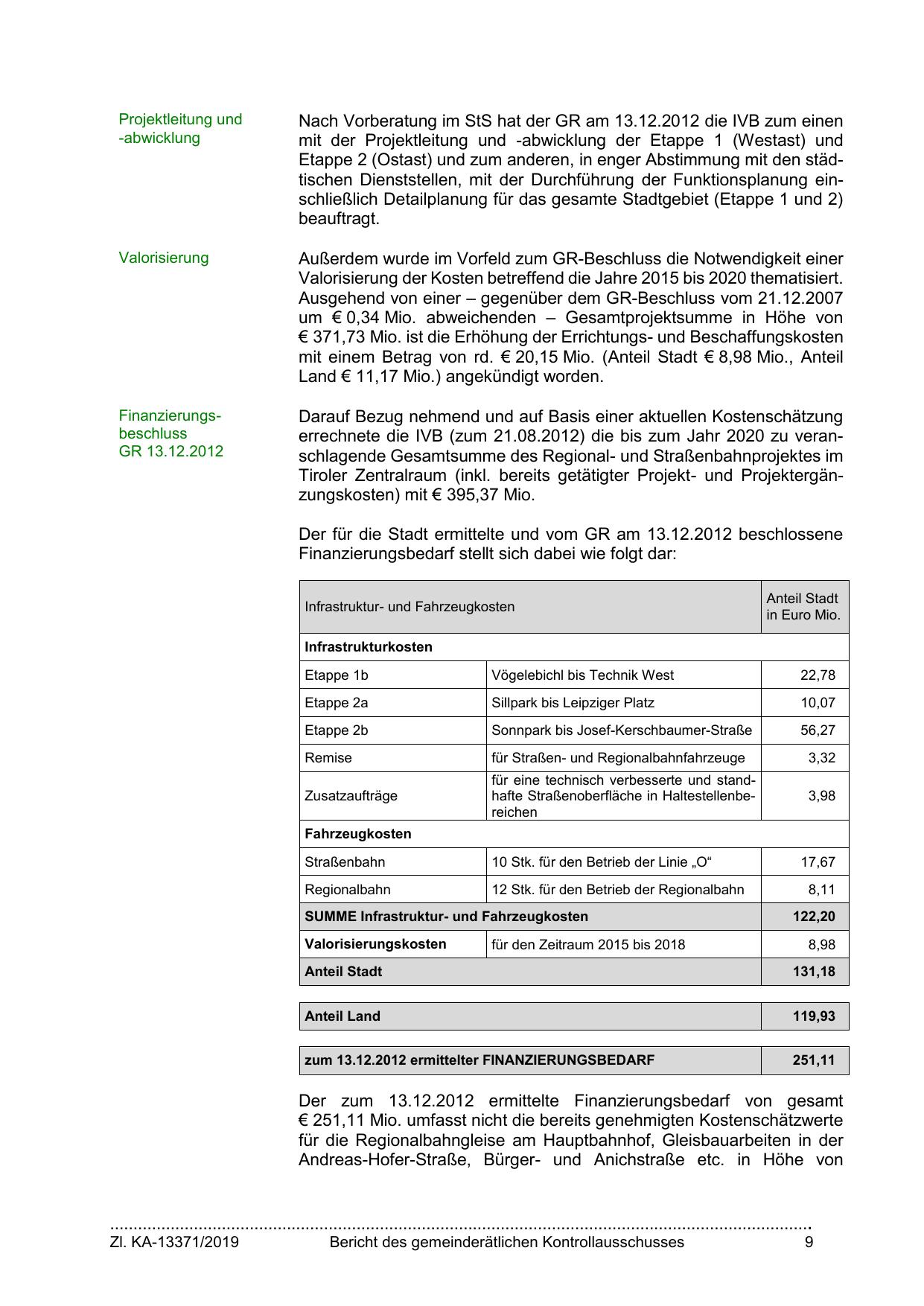 errechnete die IVB (zum 21.08.2012) die bis zum Jahr 2020 zu veranschlagende Gesamtsumme des Regional- und Straßenbahnprojektes im