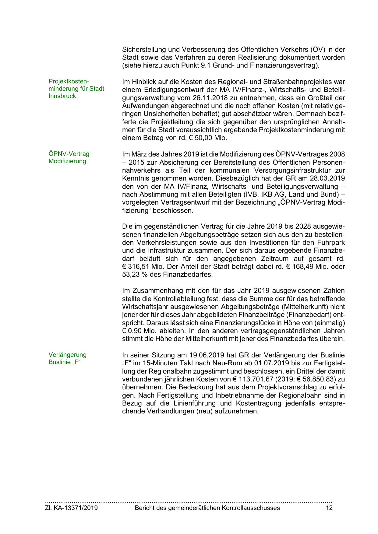 „F“ im 15-Minuten Takt nach Neu-Rum ab 01.07.2019 bis zur Fertigstellung der Regionalbahn zugestimmt und beschlossen, ein Drittel der damit