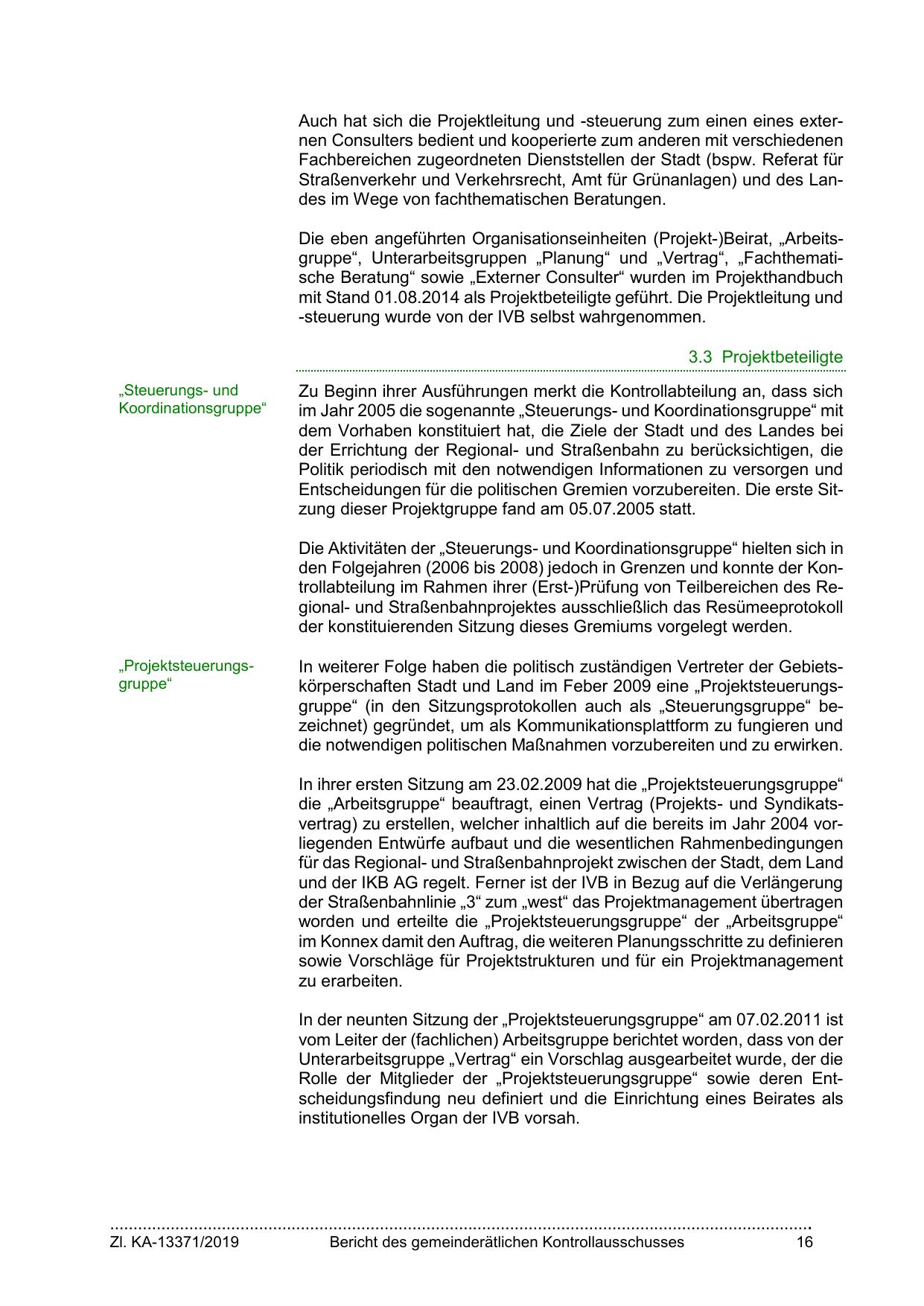 den Folgejahren (2006 bis 2008) jedoch in Grenzen und konnte der Kontrollabteilung im Rahmen ihrer (Erst-)Prüfung von Teilbereichen des Regional- und Straßenbahnprojektes ausschließlich das Resümeeprotokoll