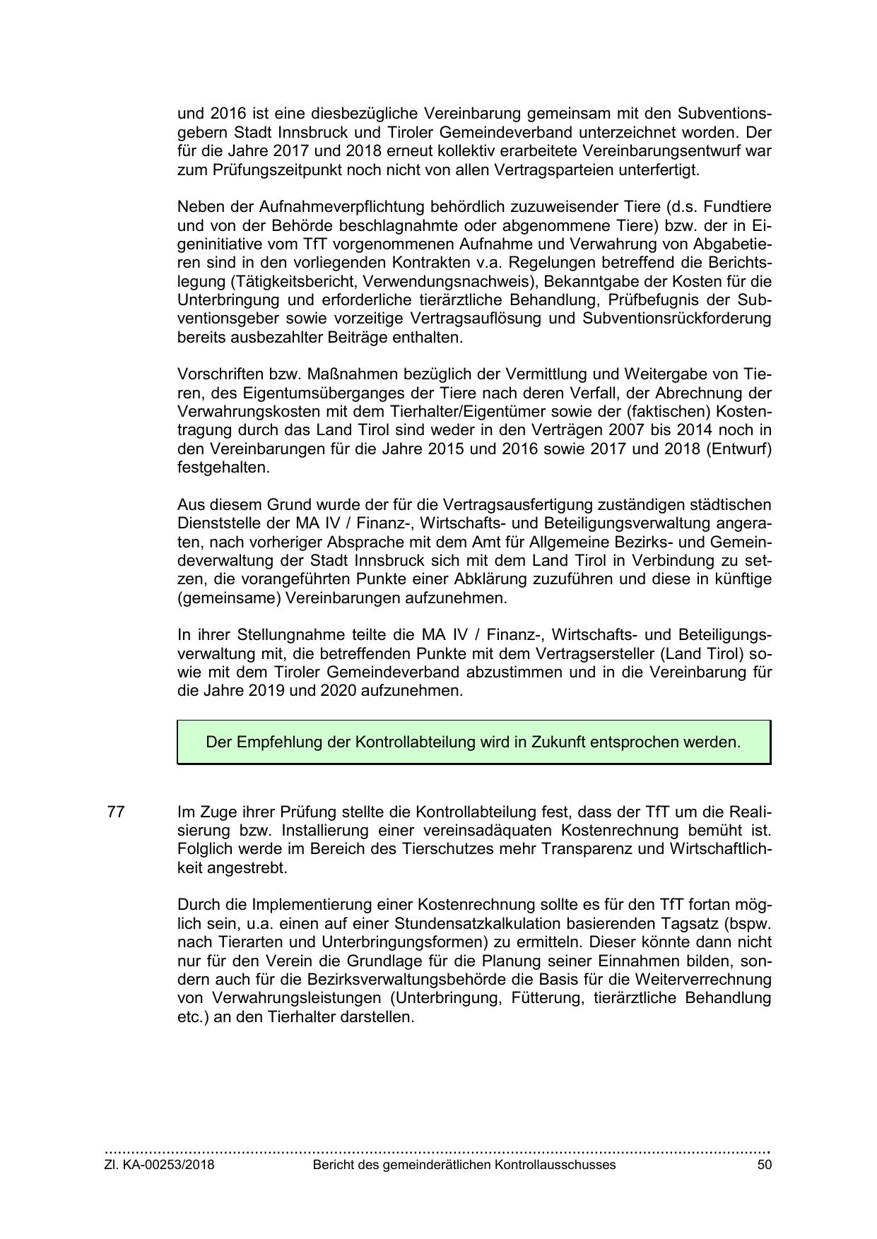 Dienststelle der MA IV / Finanz-, Wirtschafts- und Beteiligungsverwaltung angeraten, nach vorheriger Absprache mit dem Amt für Allgemeine Bezirks- und Gemeindeverwaltung der Stadt Innsbruck sich mit dem Land Tirol in Verbindung zu setzen, die vorangeführten Punkte einer Abklärung zuzuführen und diese in künftige