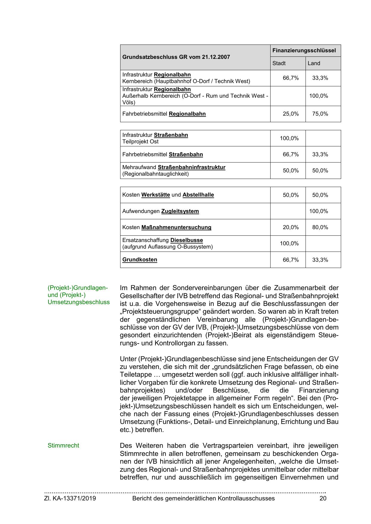Stimmrechte in allen betroffenen, gemeinsam zu beschickenden Organen der IVB hinsichtlich all jener Angelegenheiten, „welche die Umsetzung des Regional- und Straßenbahnprojektes unmittelbar oder mittelbar