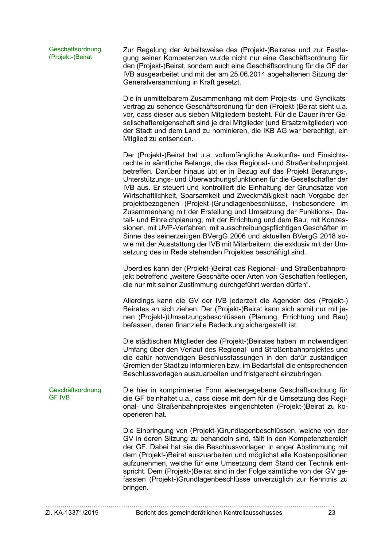 die GF beinhaltet u.a., dass diese mit dem für die Umsetzung des Regional- und Straßenbahnprojektes eingerichteten (Projekt-)Beirat zu kooperieren hat.