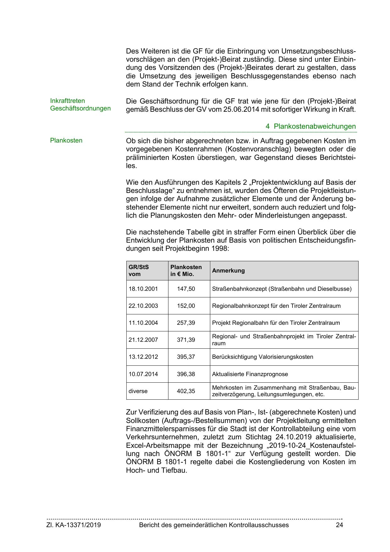 Beschlusslage“ zu entnehmen ist, wurden des Öfteren die Projektleistungen infolge der Aufnahme zusätzlicher Elemente und der Änderung bestehender Elemente nicht nur erweitert, sondern auch reduziert und folglich die Planungskosten den Mehr- oder Minderleistungen angepasst.