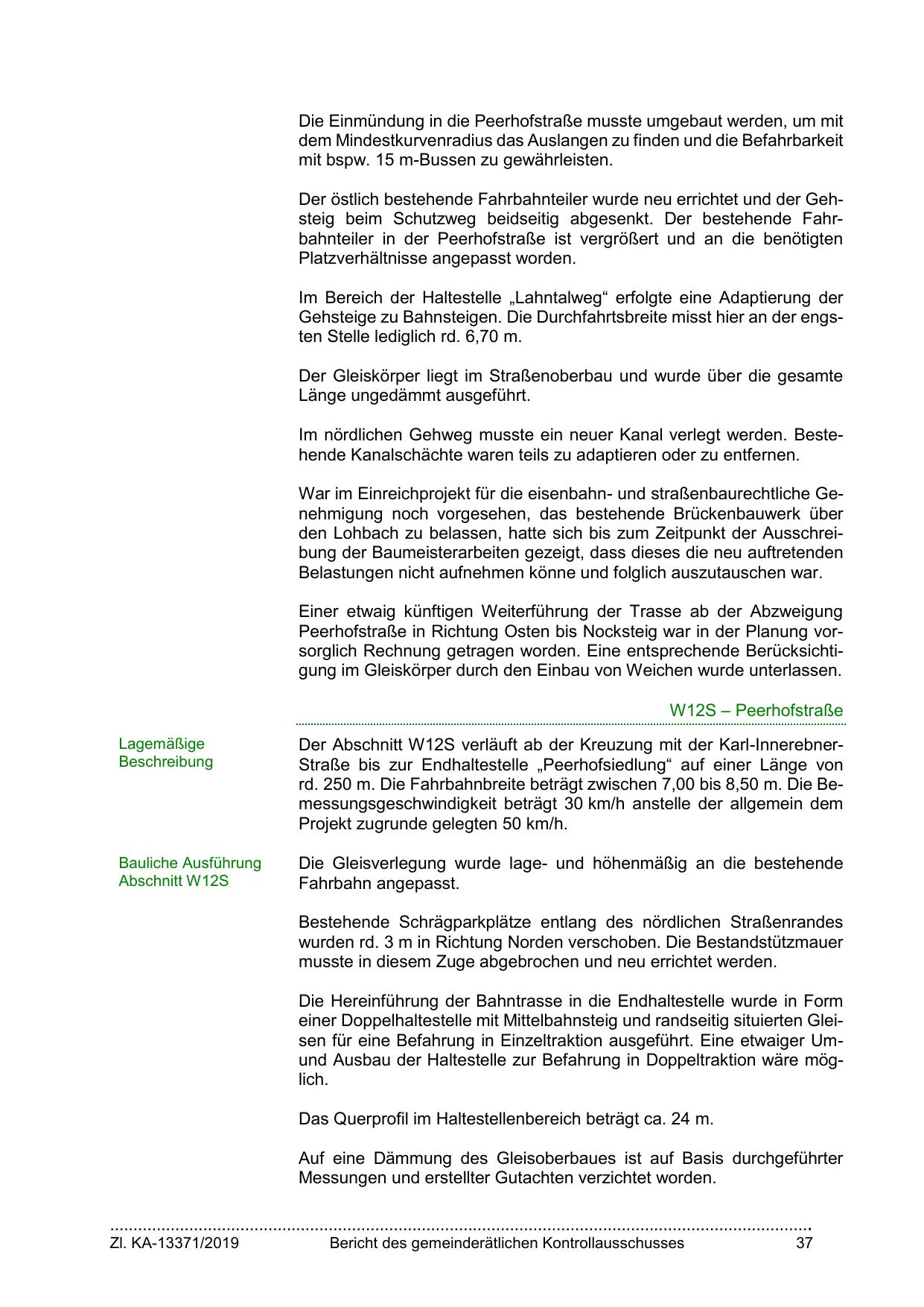 Der Abschnitt W12S verläuft ab der Kreuzung mit der Karl-InnerebnerStraße bis zur Endhaltestelle „Peerhofsiedlung“ auf einer Länge von