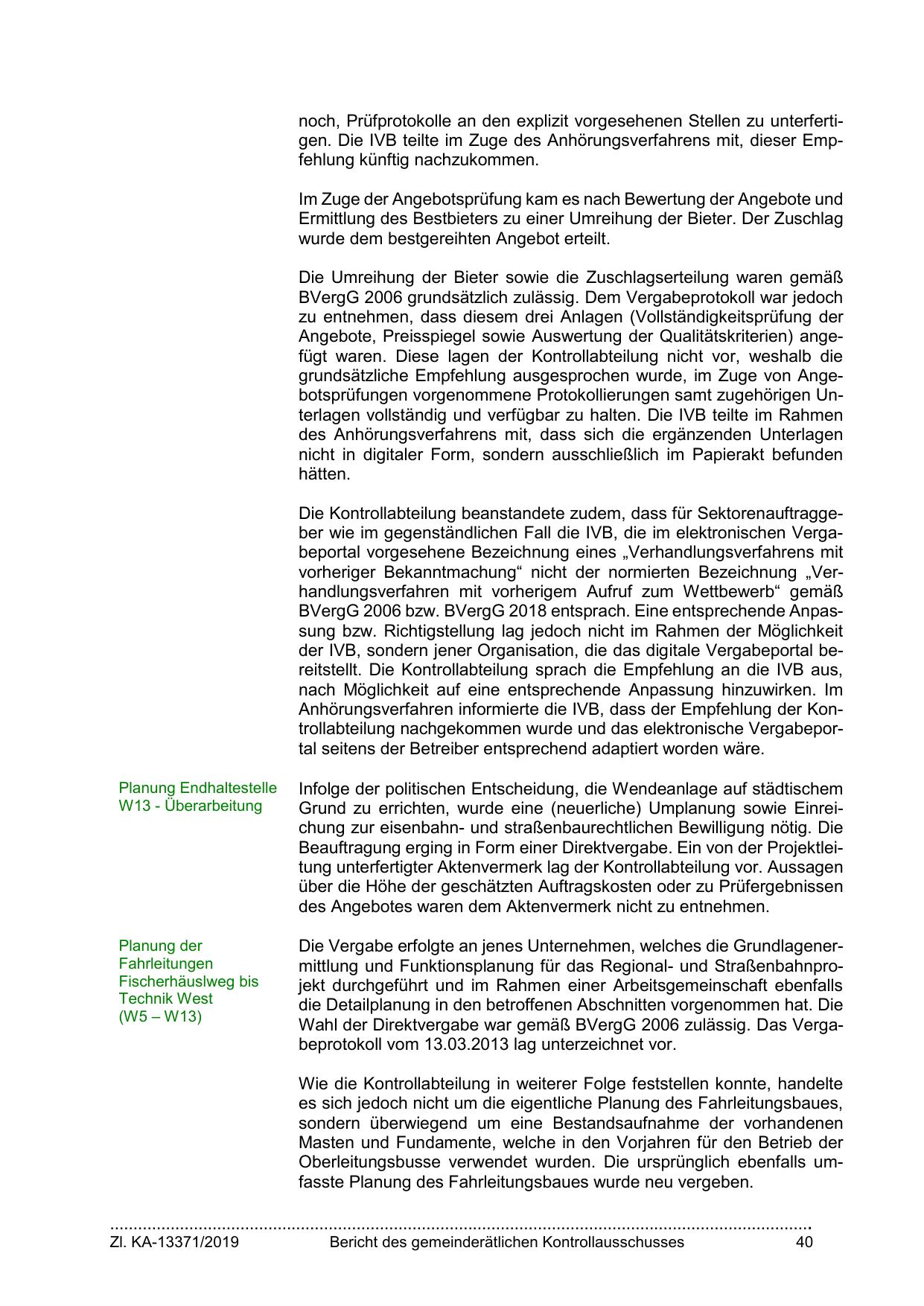 der IVB, sondern jener Organisation, die das digitale Vergabeportal bereitstellt. Die Kontrollabteilung sprach die Empfehlung an die IVB aus,