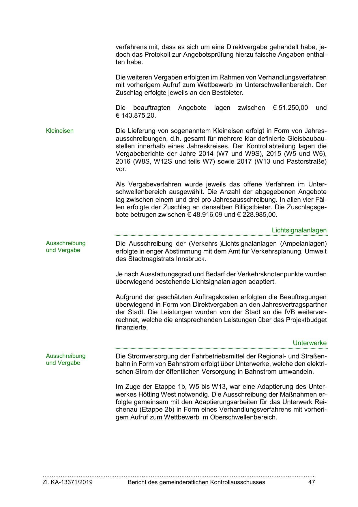 der Stadt. Die Leistungen wurden von der Stadt an die IVB weiterverrechnet, welche die entsprechenden Leistungen über das Projektbudget