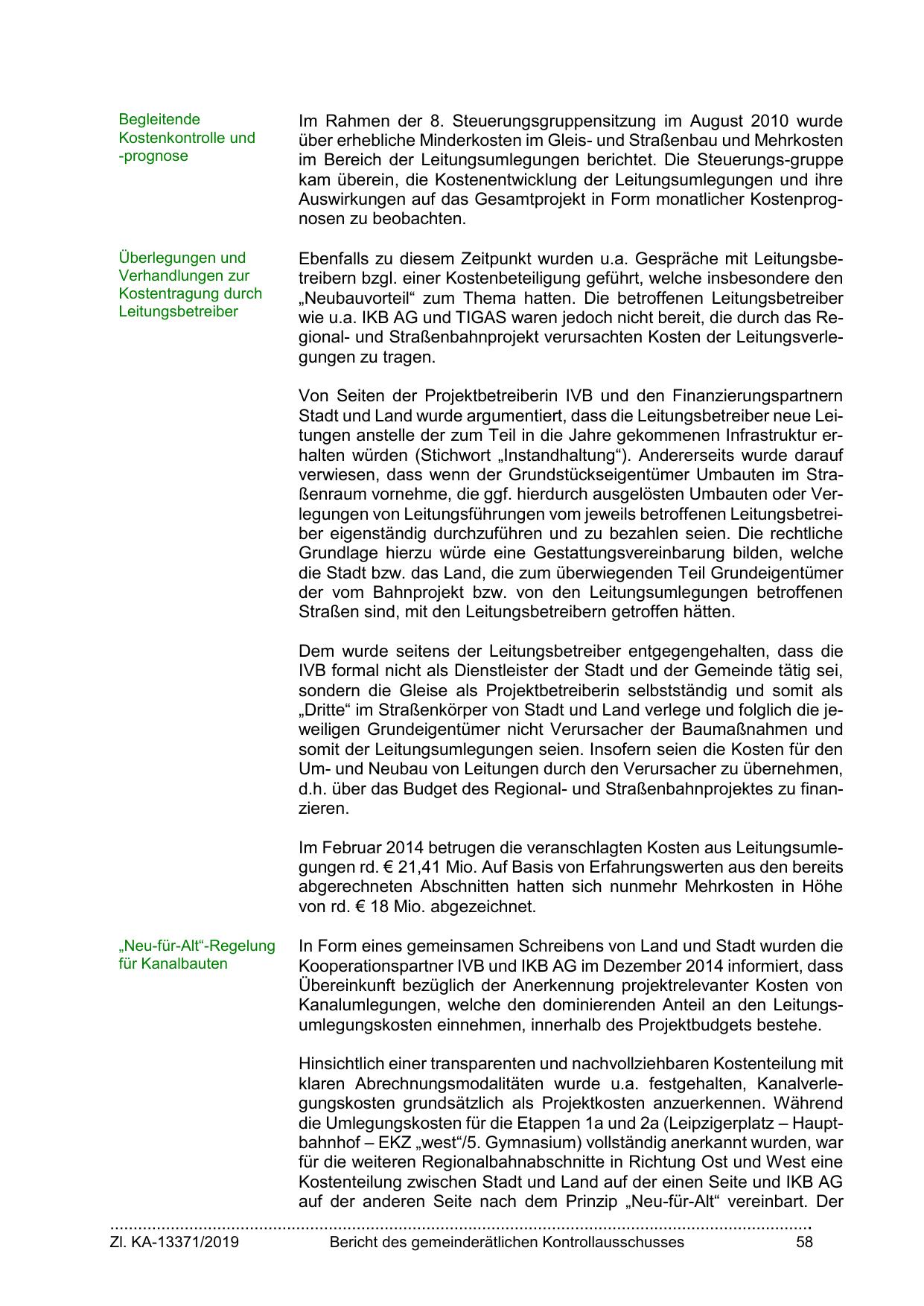 wie u.a. IKB AG und TIGAS waren jedoch nicht bereit, die durch das Regional- und Straßenbahnprojekt verursachten Kosten der Leitungsverlegungen zu tragen.