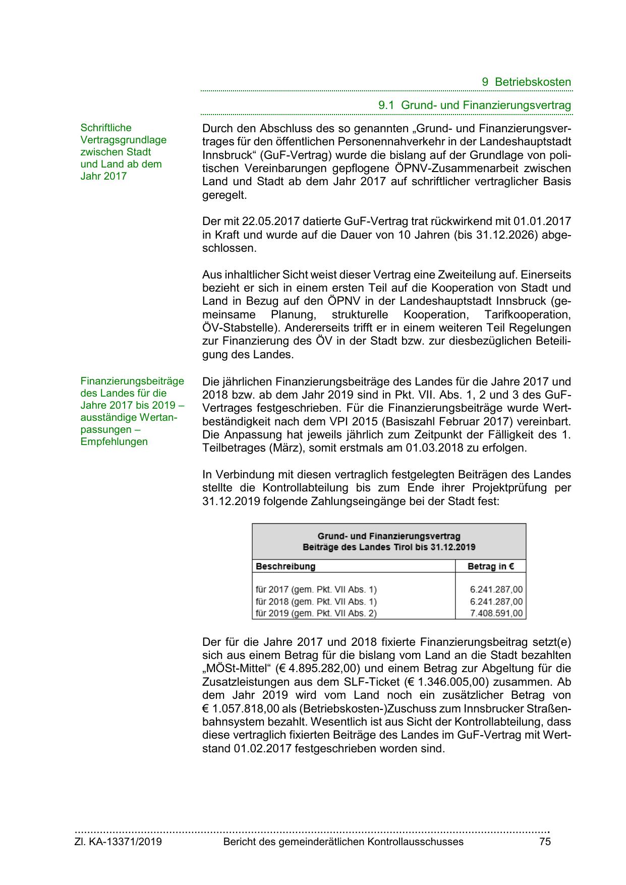 € 1.057.818,00 als (Betriebskosten-)Zuschuss zum Innsbrucker Straßenbahnsystem bezahlt. Wesentlich ist aus Sicht der Kontrollabteilung, dass