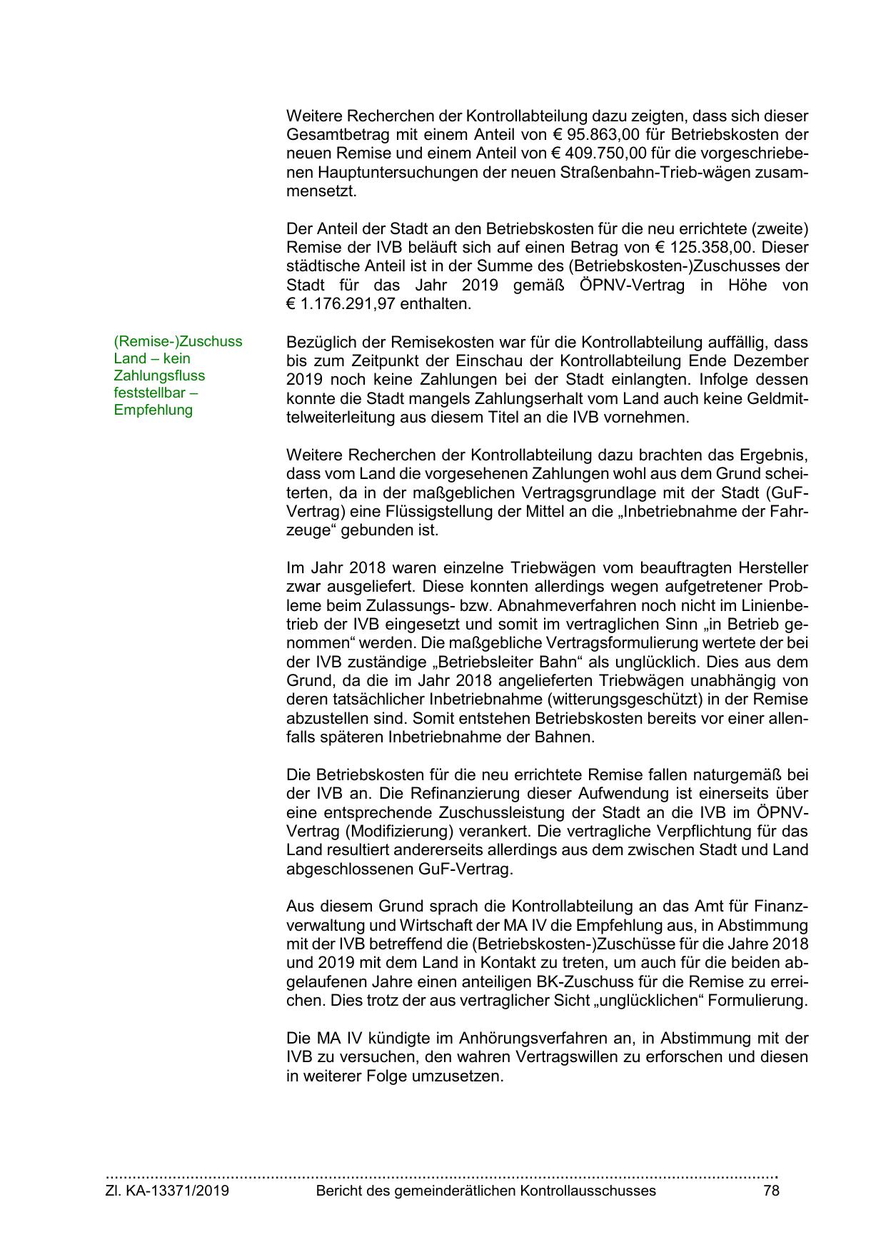 konnte die Stadt mangels Zahlungserhalt vom Land auch keine Geldmittelweiterleitung aus diesem Titel an die IVB vornehmen.