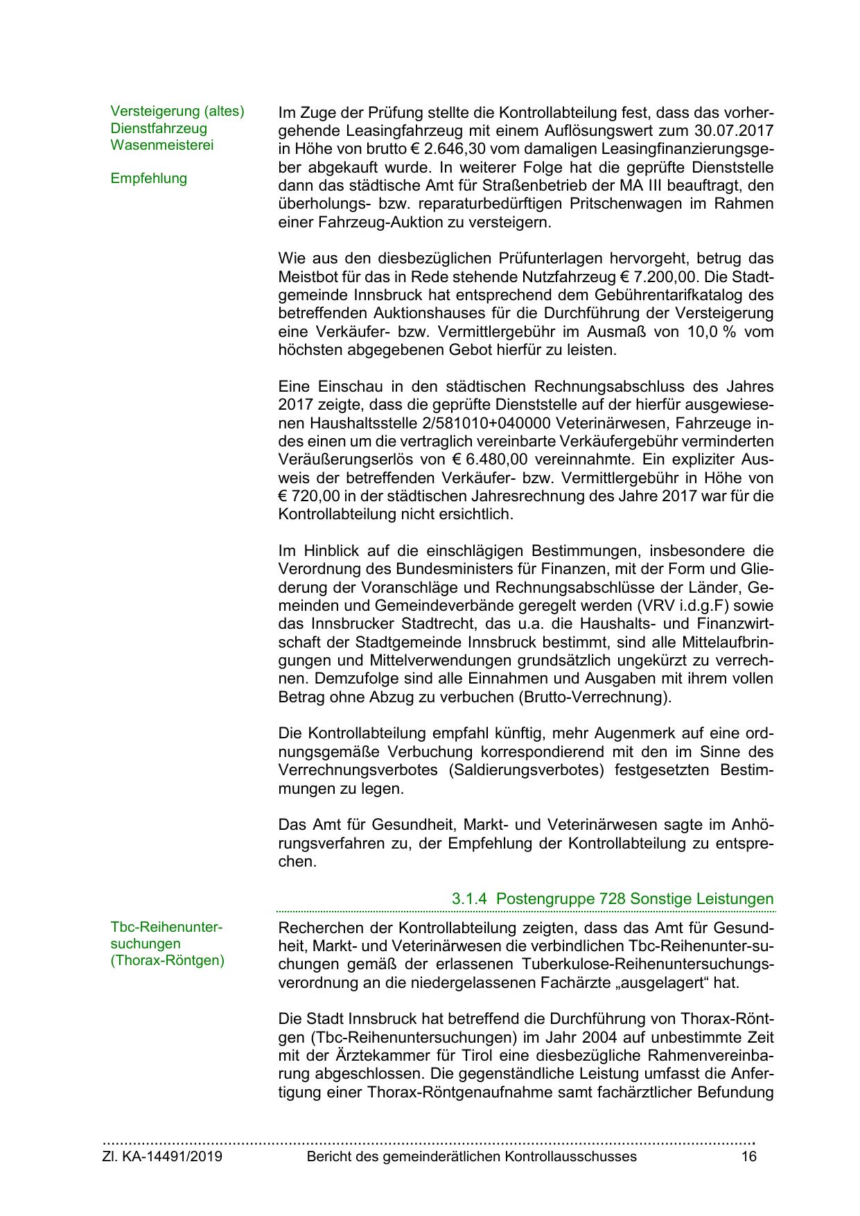 Die Stadt Innsbruck hat betreffend die Durchführung von Thorax-Röntgen (Tbc-Reihenuntersuchungen) im Jahr 2004 auf unbestimmte Zeit