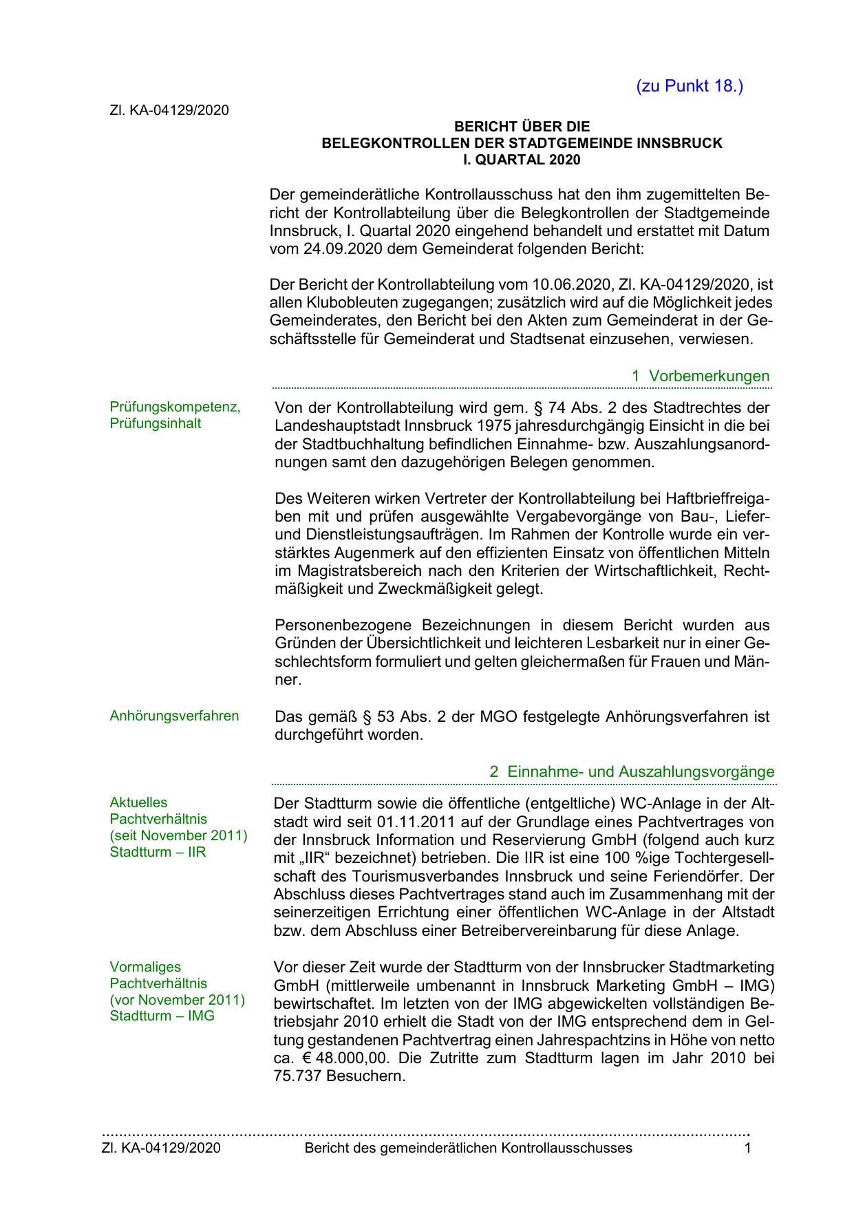 BELEGKONTROLLEN DER STADTGEMEINDE INNSBRUCK