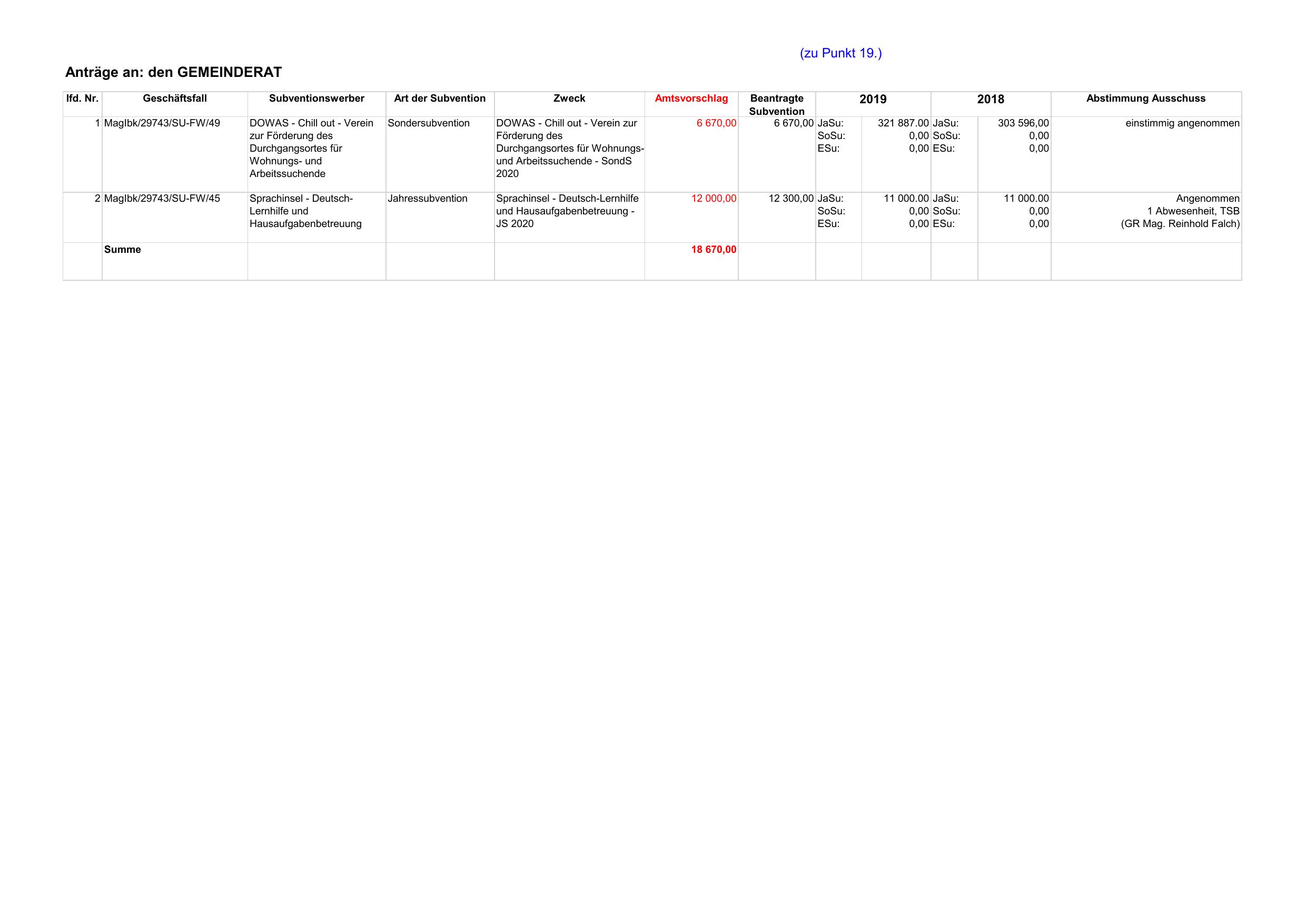 Anträge an: den GEMEINDERAT