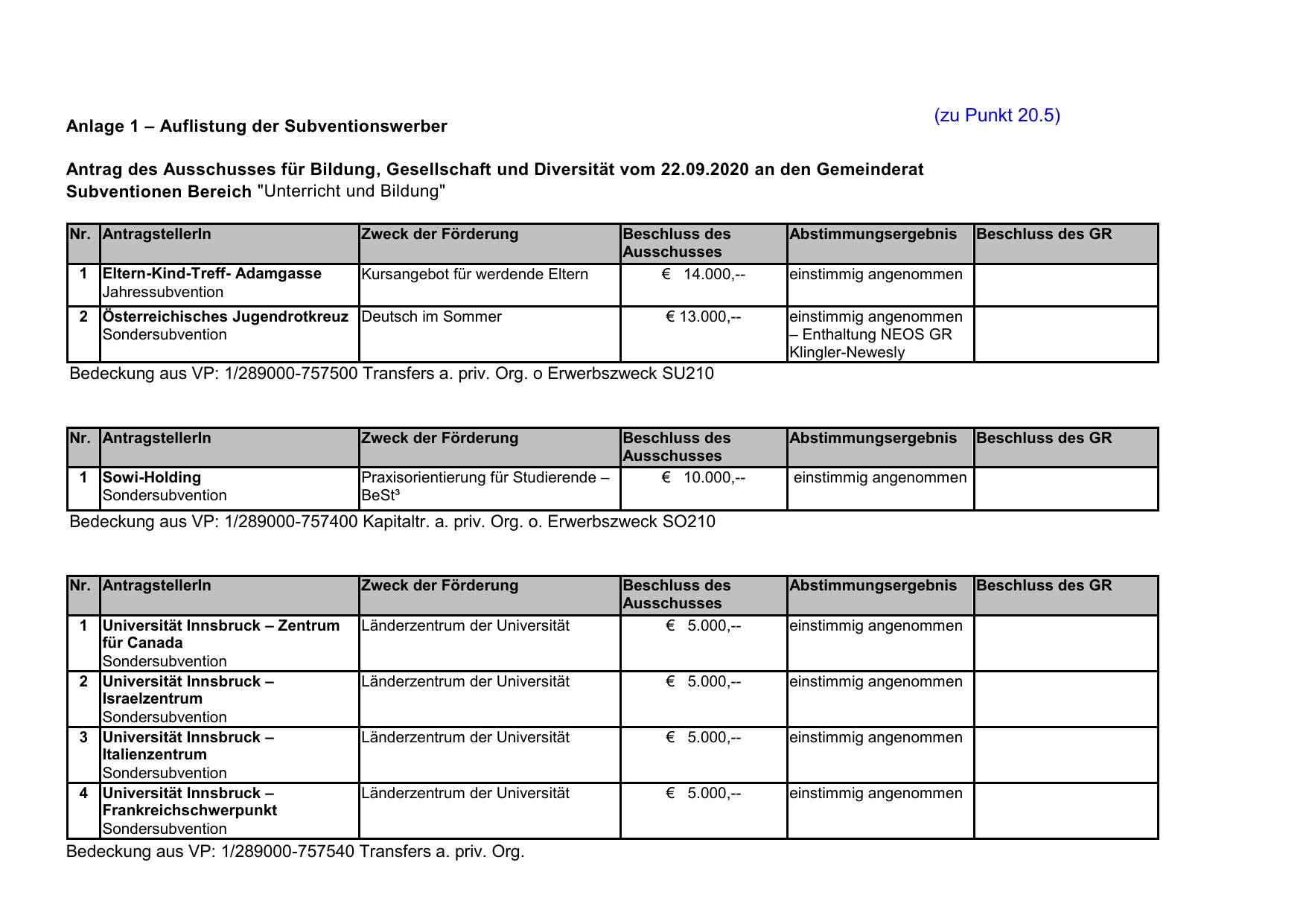 Bedeckung aus VP: 1/289000-757400 Kapitaltr. a. priv. Org. o. Erwerbszweck SO210