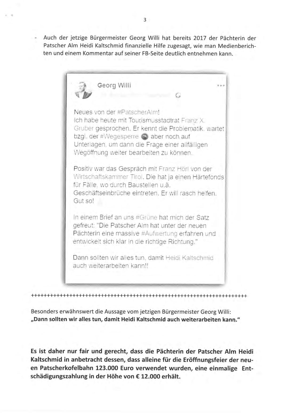 Patscher Alm Heidi Kaltschmid finanzielle Hilfe zugesagt, wie man Medienberichten und einem Kommentar auf seiner FB-Seite deutlich entnehmen kann.