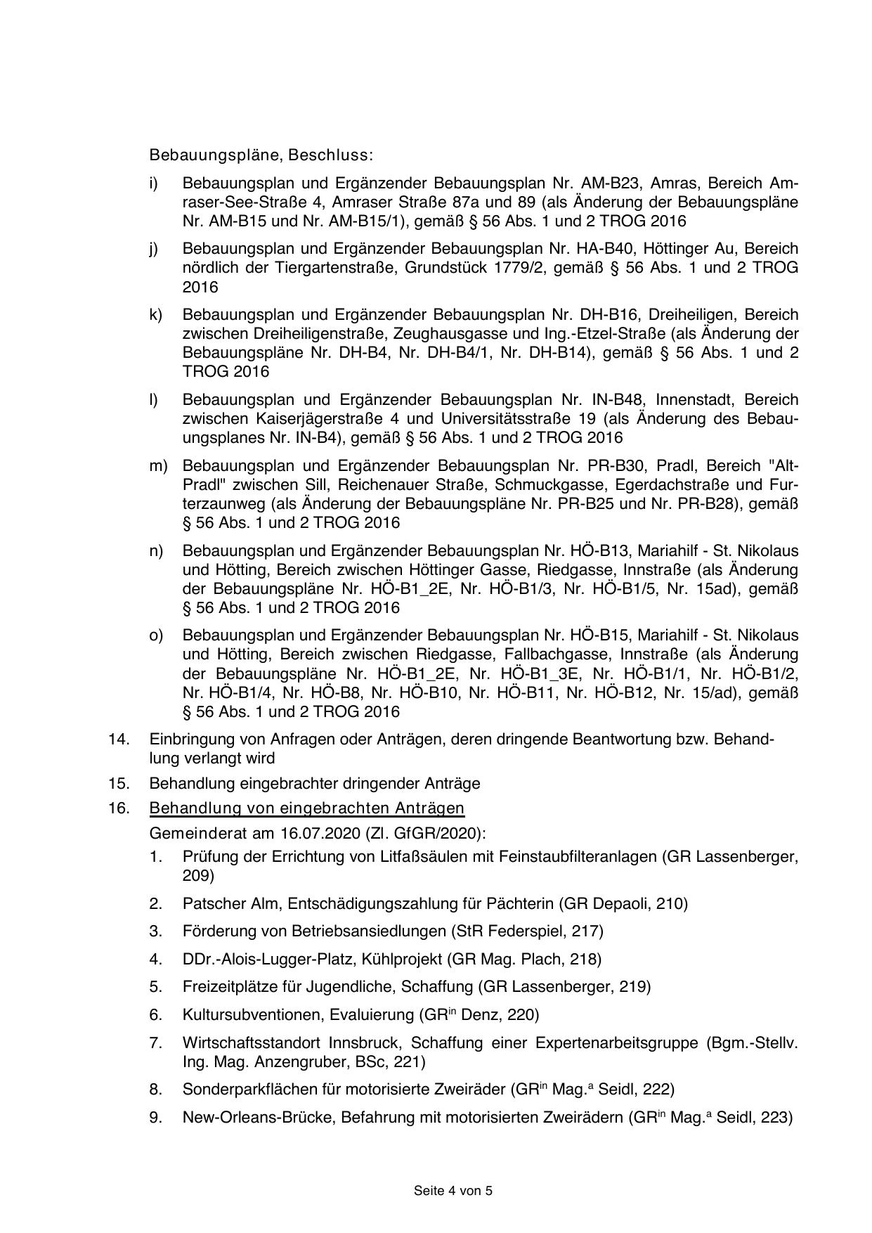 Gemeinderat am 16.07.2020 (Zl. GfGR/2020):