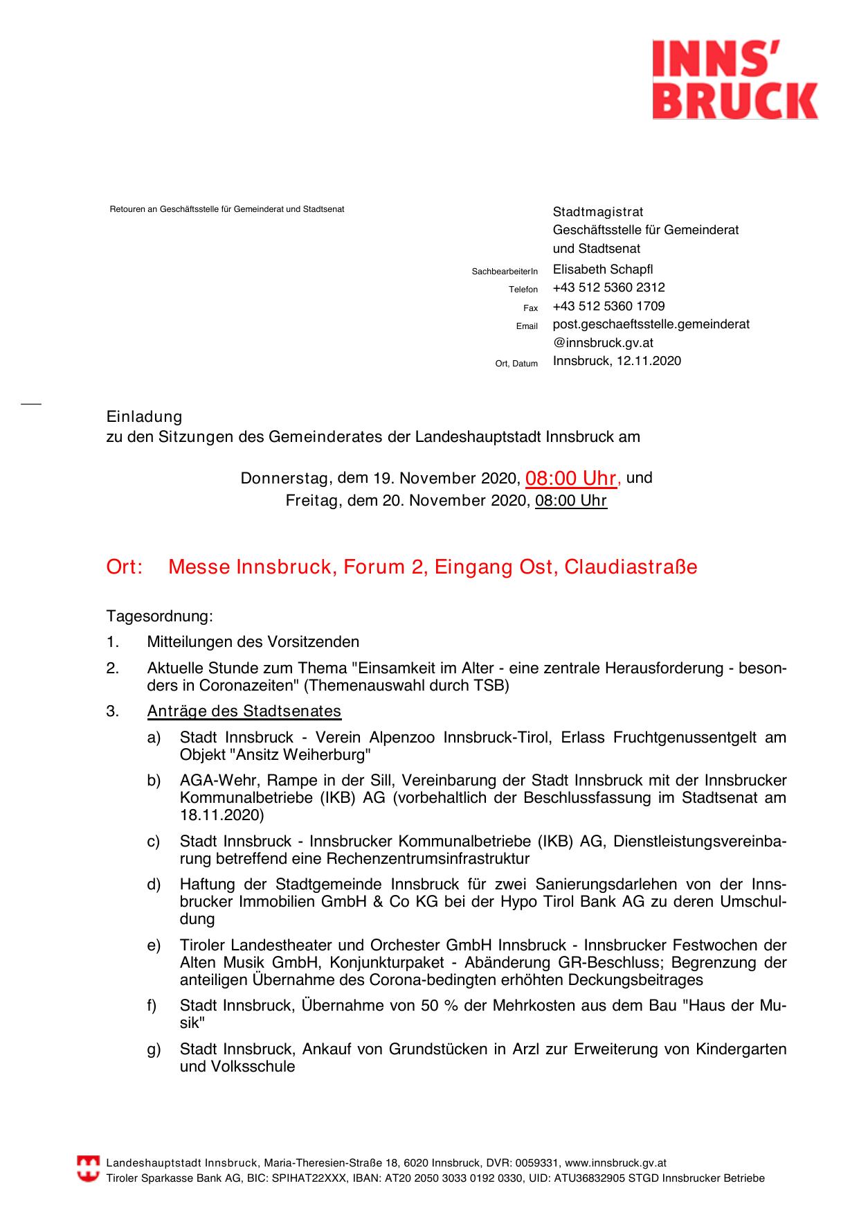 zu den Sitzungen des Gemeinderates der Landeshauptstadt Innsbruck am