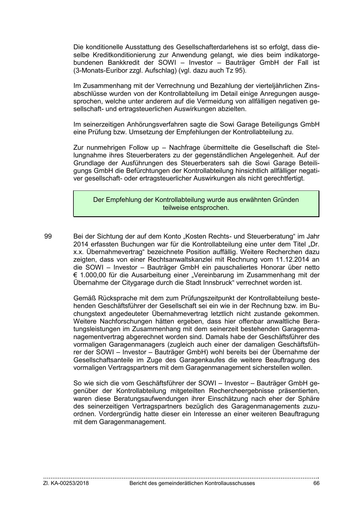 Übernahme der Citygarage durch die Stadt Innsbruck“ verrechnet worden ist.