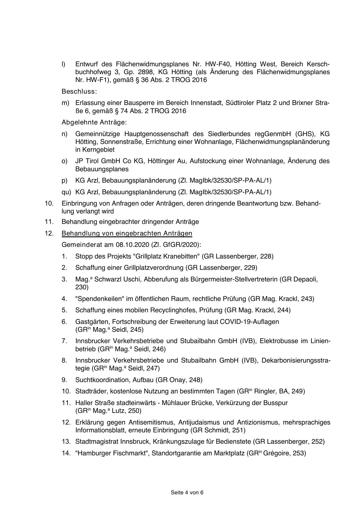 Gemeinderat am 08.10.2020 (Zl. GfGR/2020):