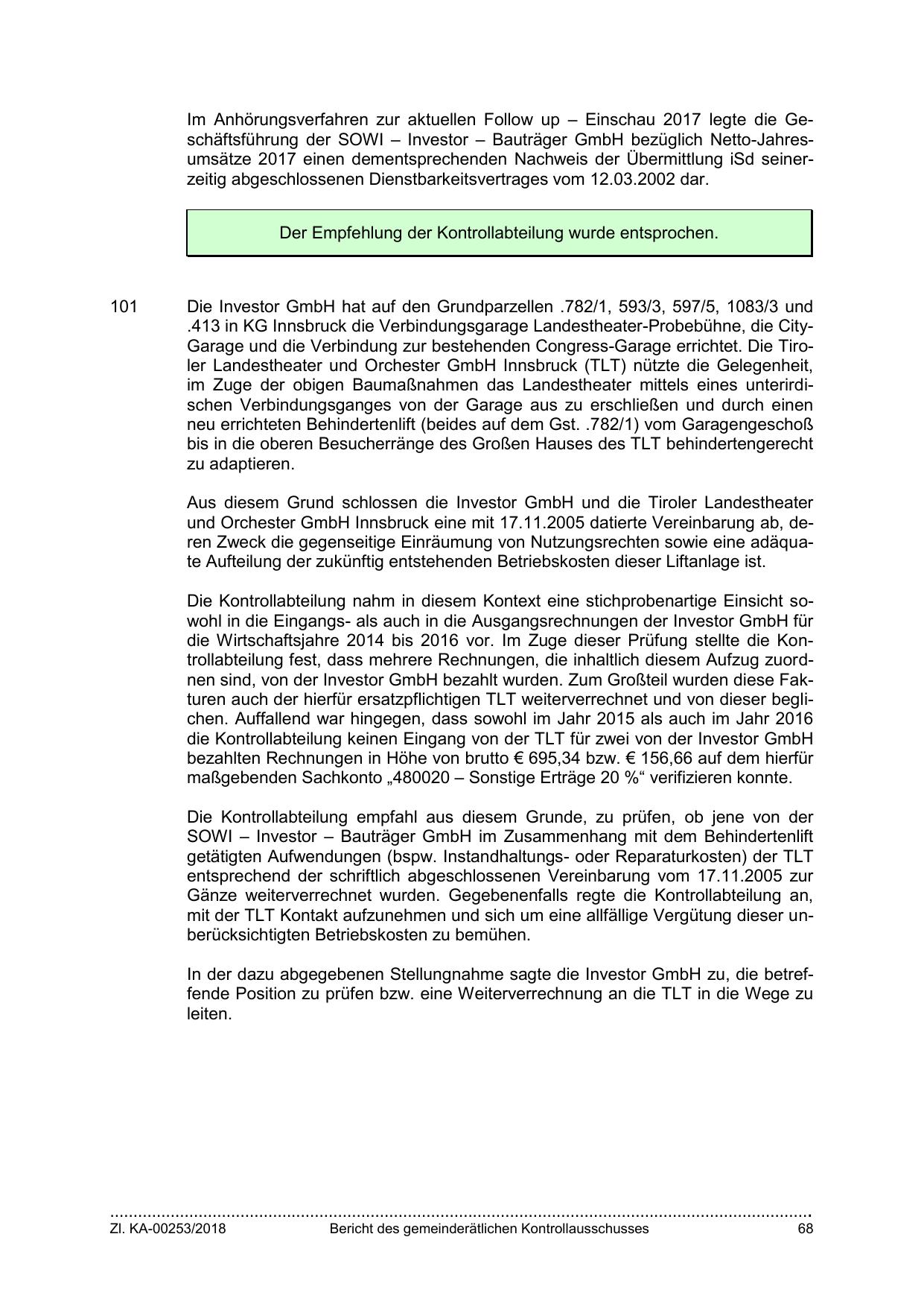 .413 in KG Innsbruck die Verbindungsgarage Landestheater-Probebühne, die CityGarage und die Verbindung zur bestehenden Congress-Garage errichtet. Die Tiroler Landestheater und Orchester GmbH Innsbruck (TLT) nützte die Gelegenheit,