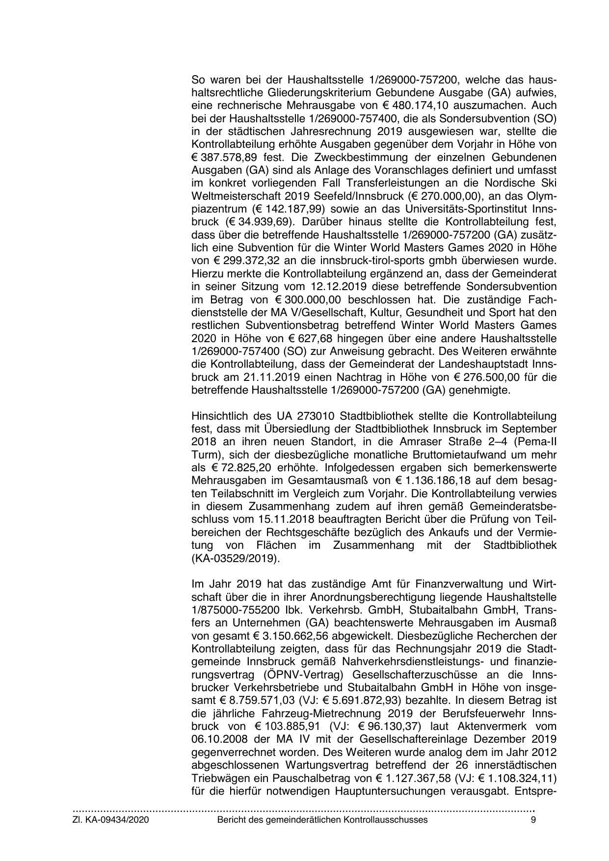 Weltmeisterschaft 2019 Seefeld/Innsbruck (€ 270.000,00), an das Olympiazentrum (€ 142.187,99) sowie an das Universitäts-Sportinstitut Innsbruck (€ 34.939,69). Darüber hinaus stellte die Kontrollabteilung fest,