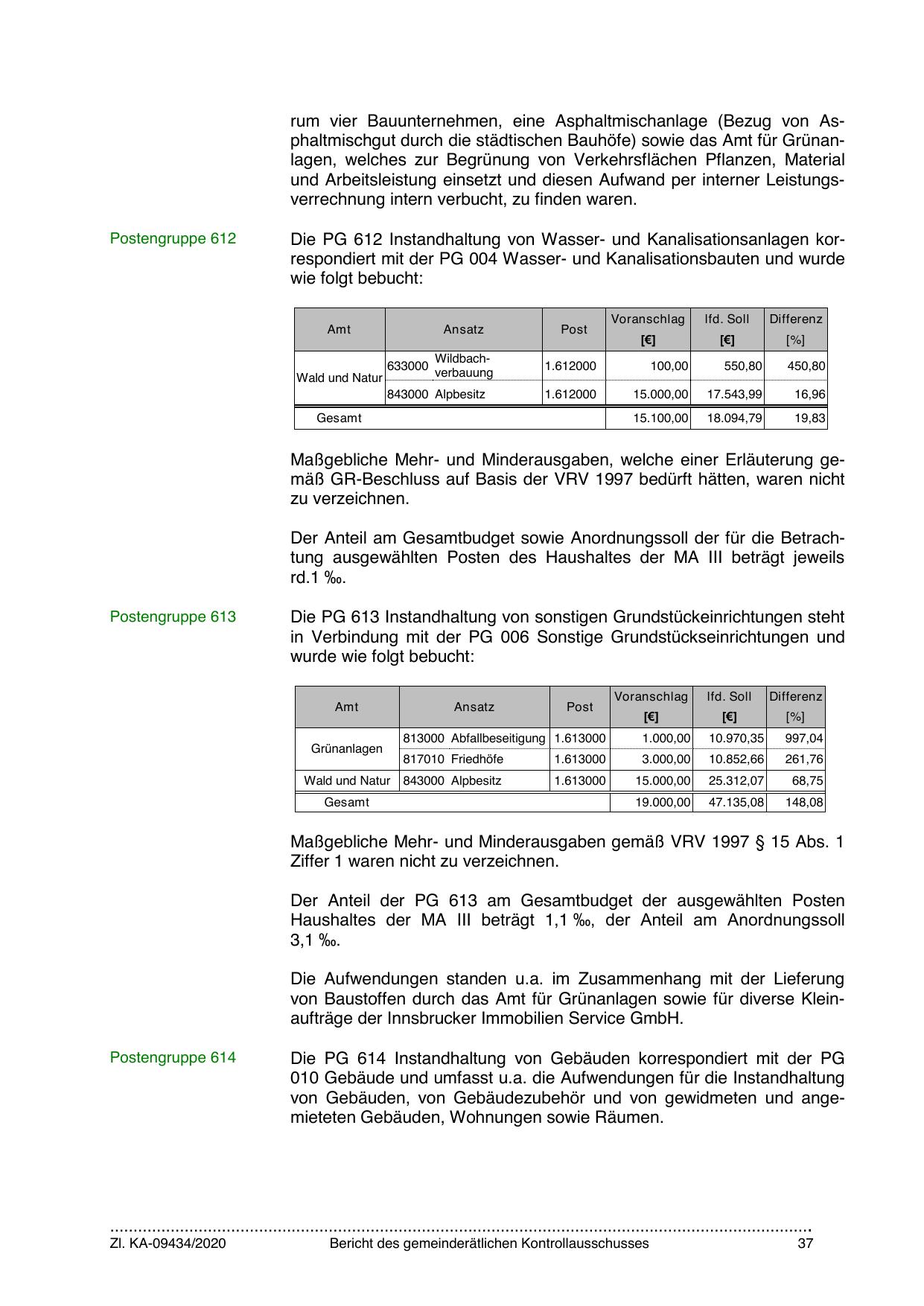 Maßgebliche Mehr- und Minderausgaben, welche einer Erläuterung gemäß GR-Beschluss auf Basis der VRV 1997 bedürft hätten, waren nicht