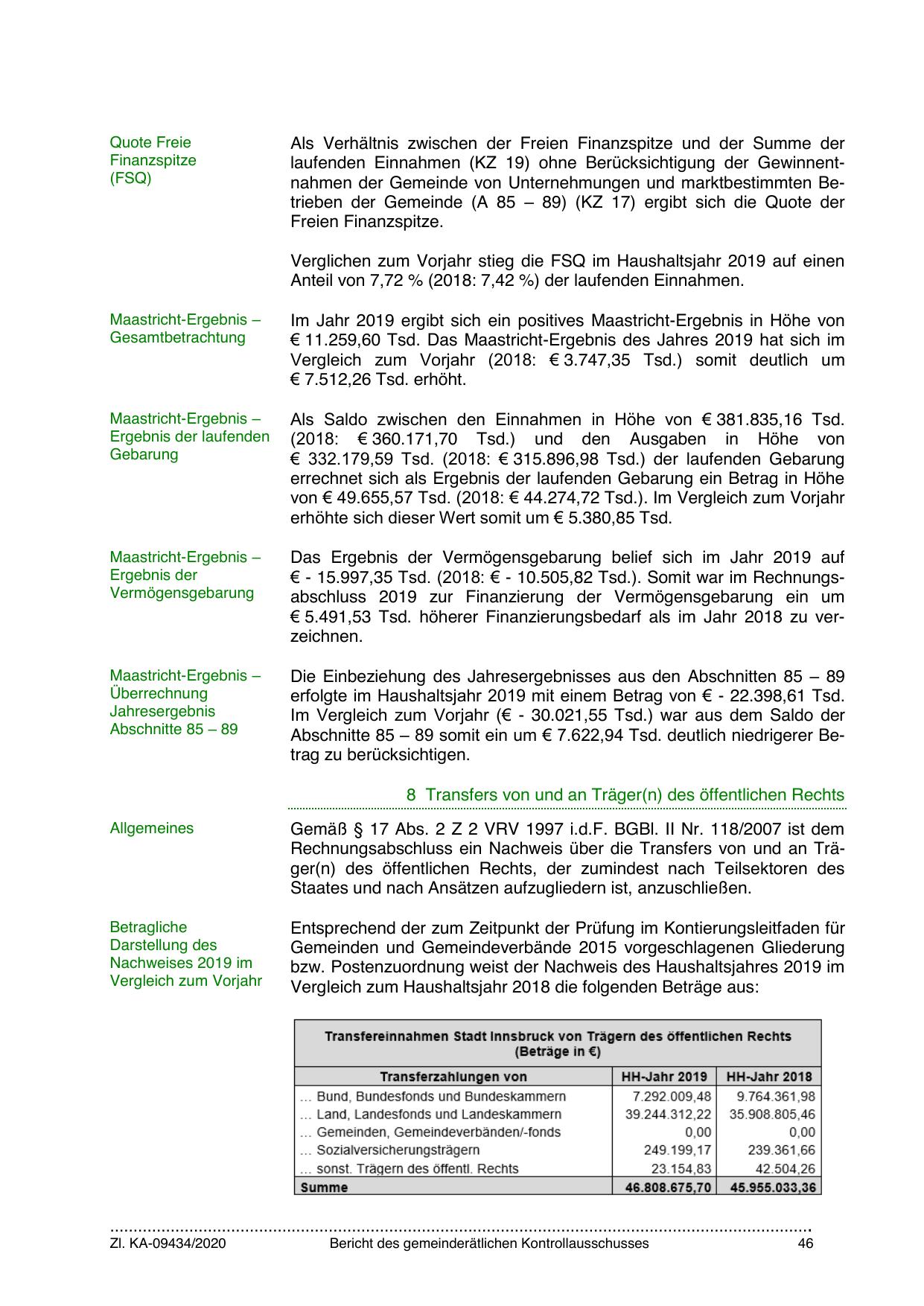 Rechnungsabschluss ein Nachweis über die Transfers von und an Träger(n) des öffentlichen Rechts, der zumindest nach Teilsektoren des