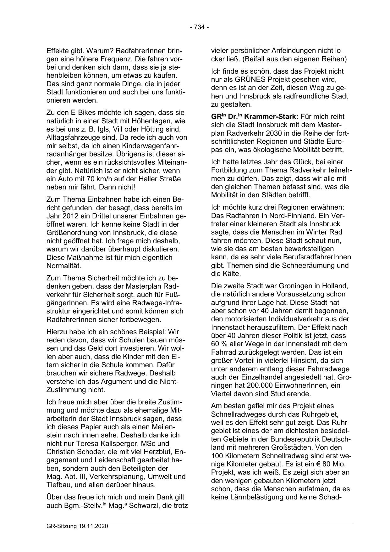 Ich freue mich aber über die breite Zustimmung und möchte dazu als ehemalige Mitarbeiterin der Stadt Innsbruck sagen, dass