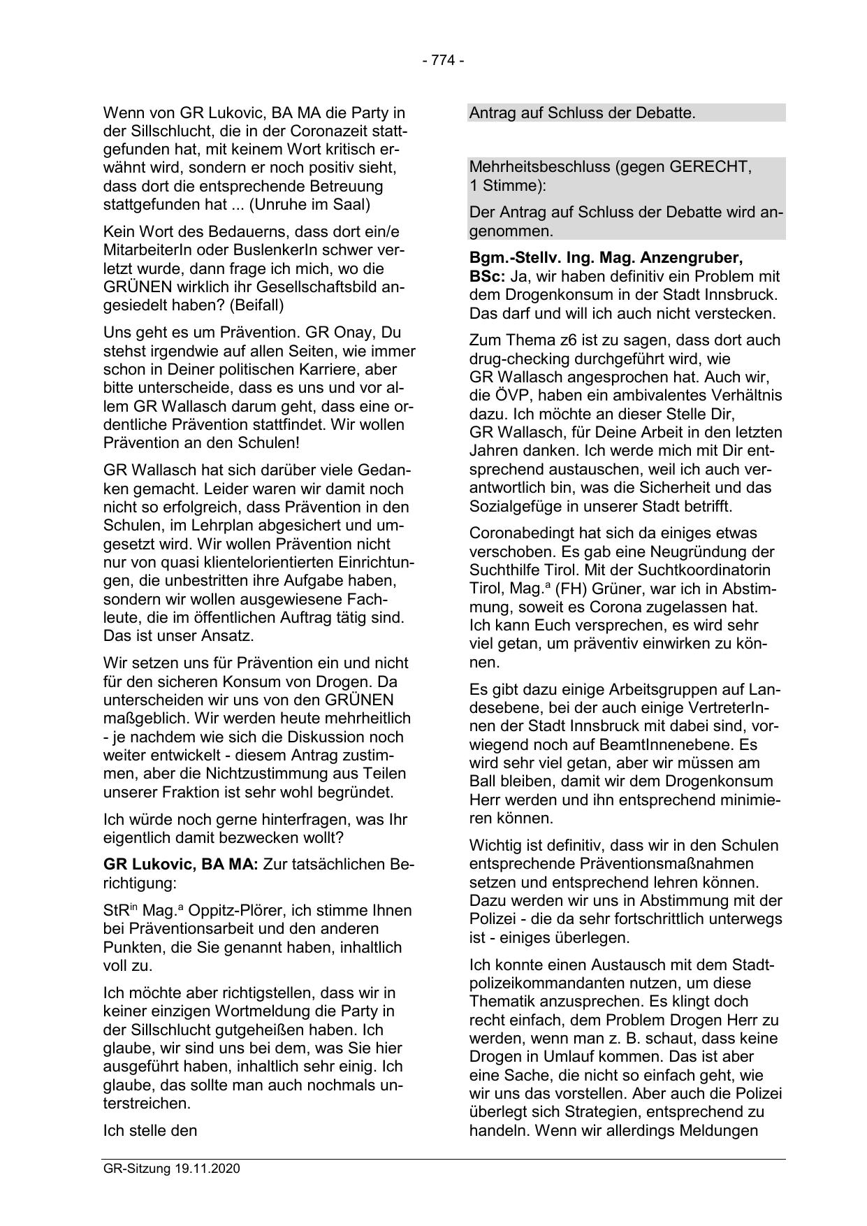GR Lukovic, BA MA: Zur tatsächlichen Berichtigung: